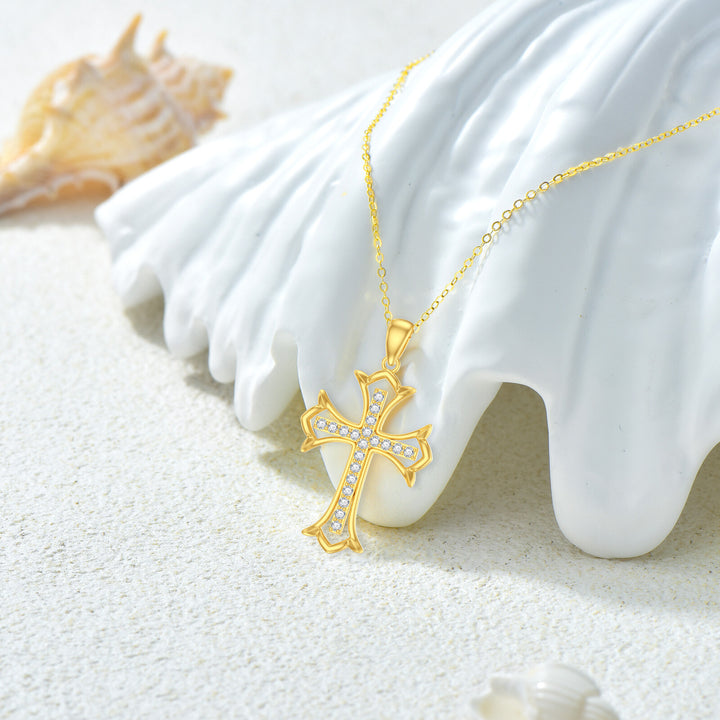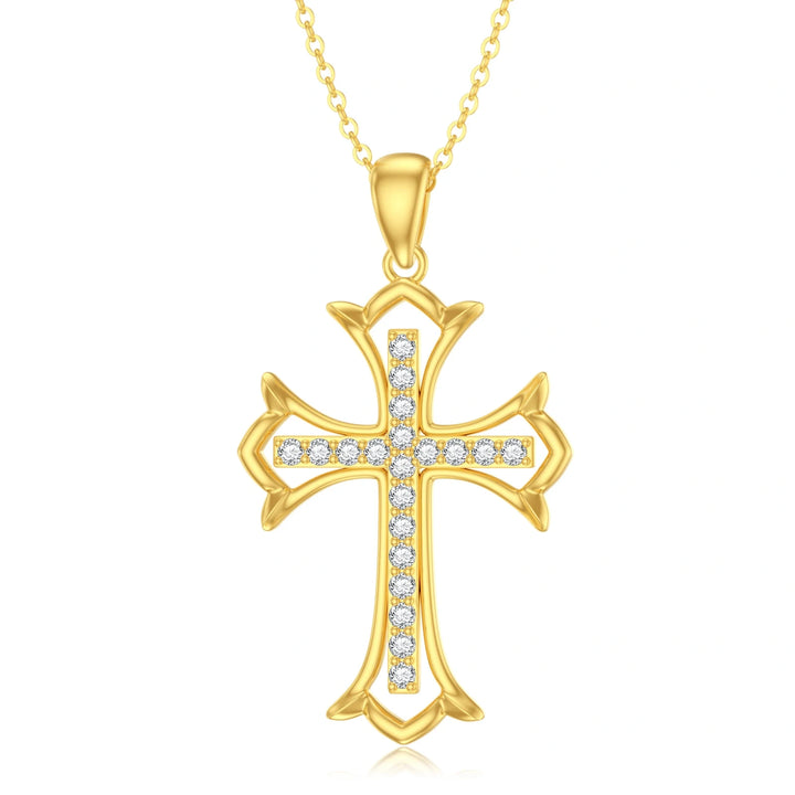 10K Gold Cubic Zirconia Cross Pendant Necklace