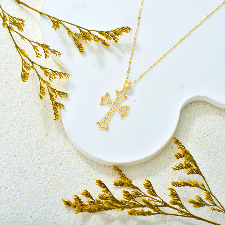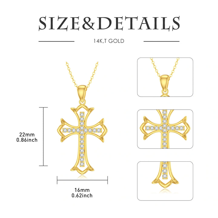 This 10K Gold Cubic Zirconia Cross Pendant Necklace by YFN is a sophisticated accessory for women. This exquisite 10K gold pendant necklace features a stunning cross design adorned with sparkling cubic zirconia. It combines the luxurious appeal of gold with the brilliance of cubic zirconia, ensuring you shine with grace and confidence wherever you go.