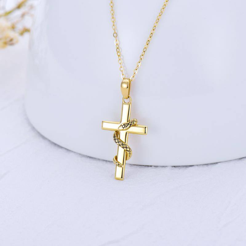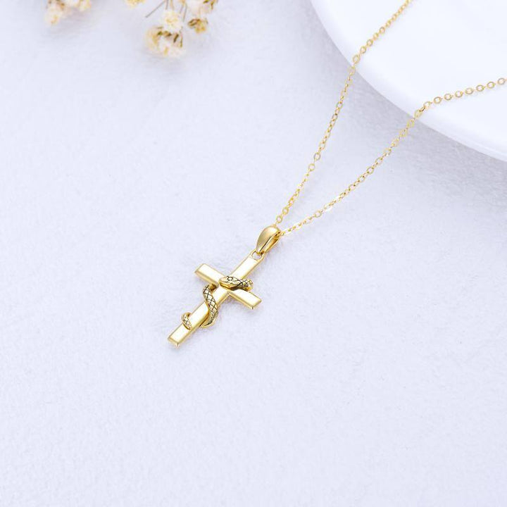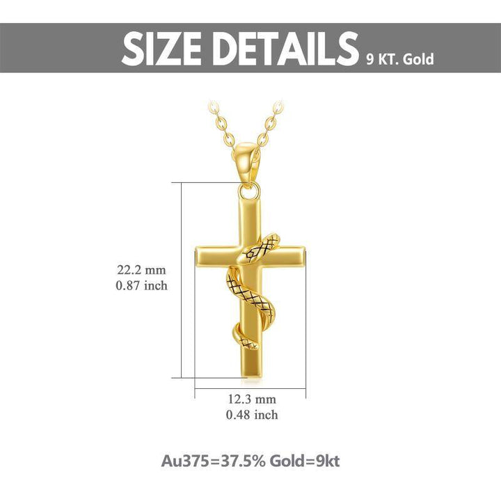9K Gold Snake & Cross Pendant Necklace