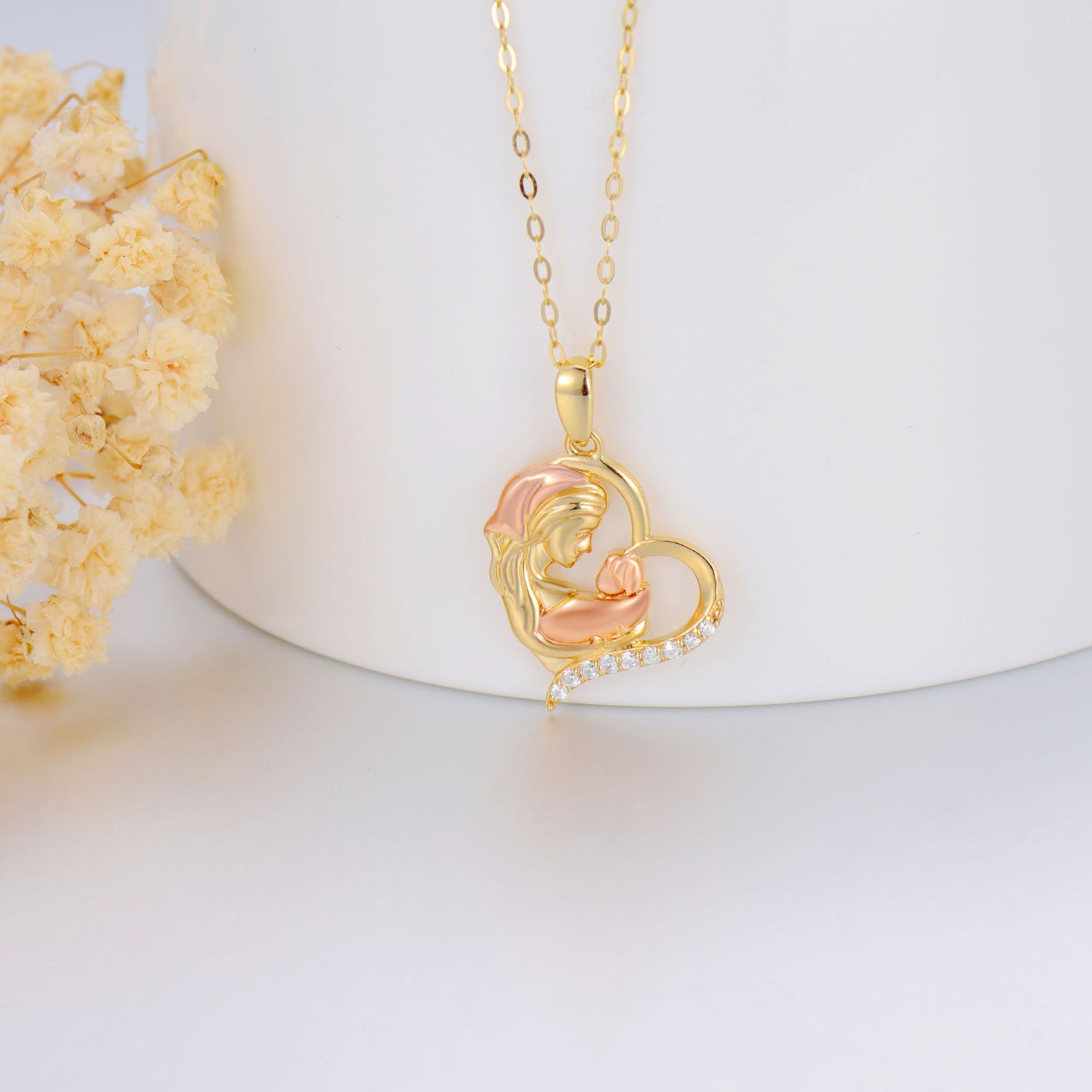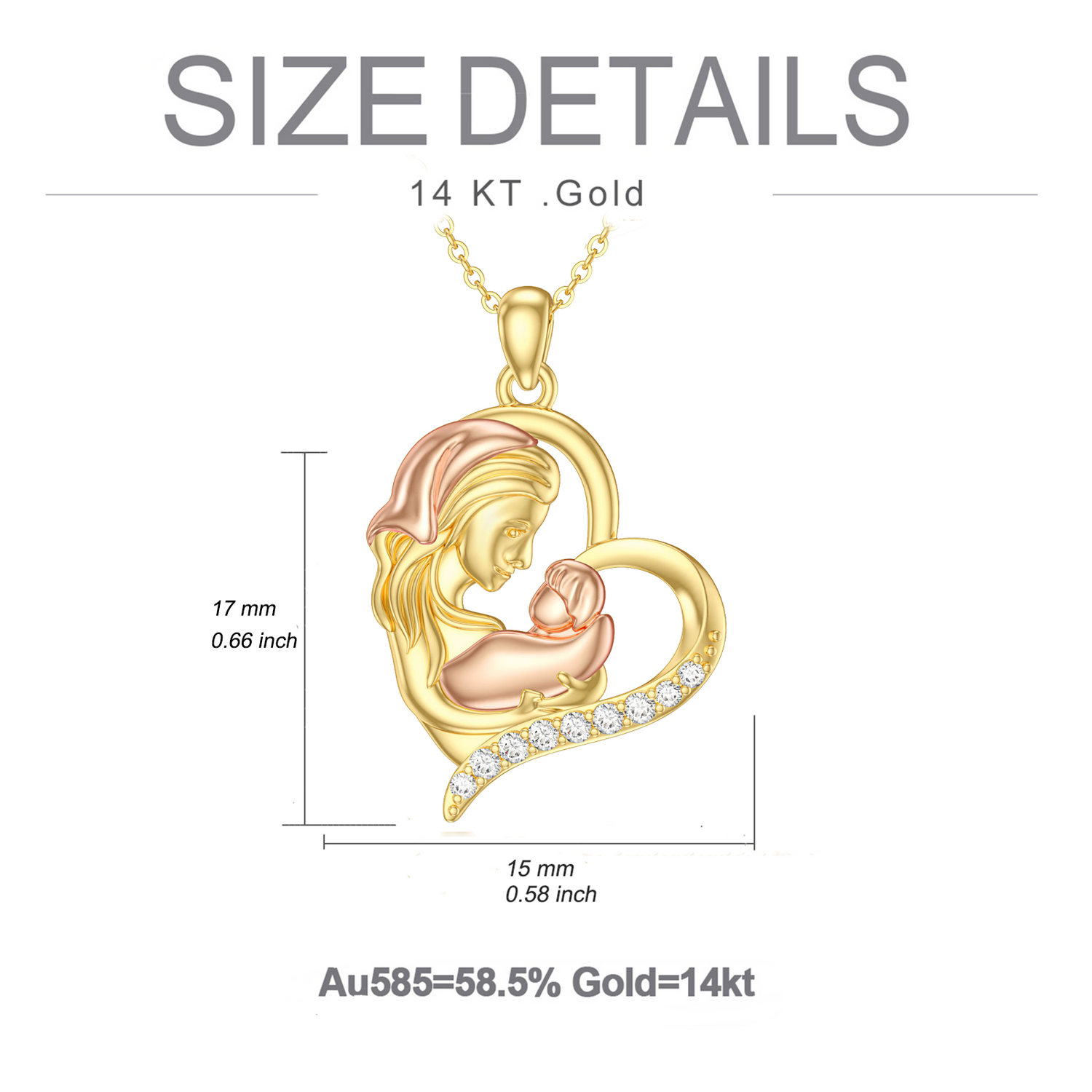 This 14K Gold & Rose Gold Round Cubic Zirconia Heart Pendant Necklace For Mother Daughter by YFN is an exquisite, timeless piece celebrating the Mother-Daughter bond. The 14K gold chain is adorned with a heart-shaped round Cubic Zirconia, featuring a mix of gold and rose gold tones. Crafted with meticulous detail, this versatile necklace offers elegance and durable quality.