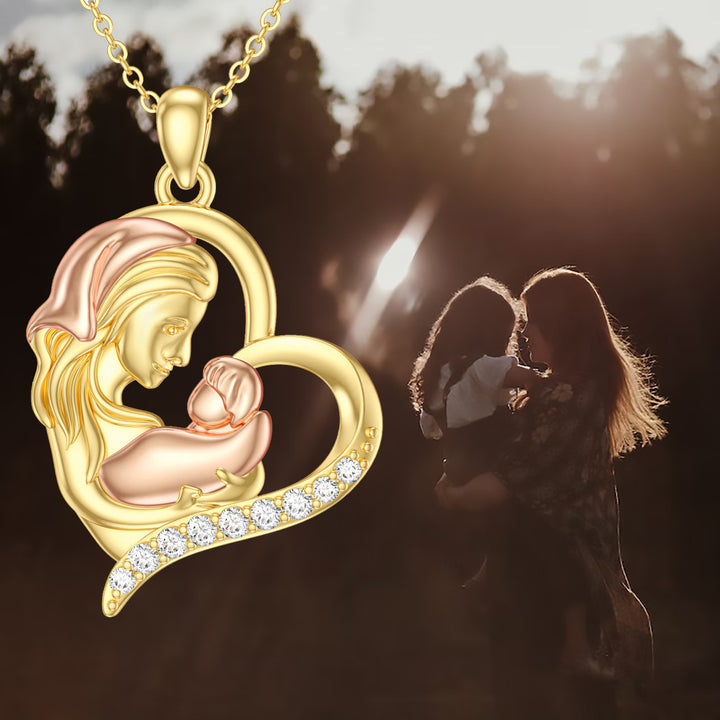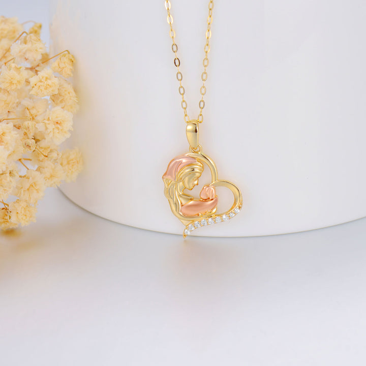 14K Gold & Rose Gold Round Cubic Zirconia Heart Pendant Necklace For Mother Daughter