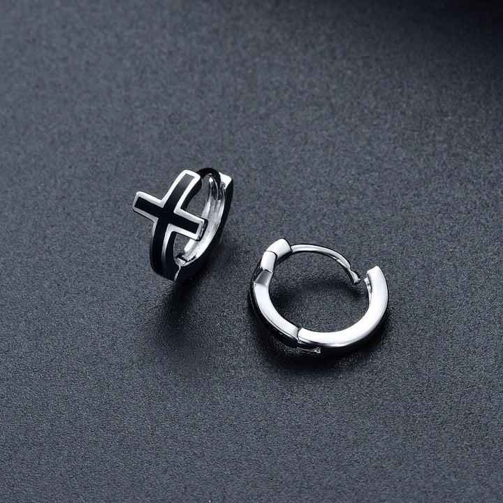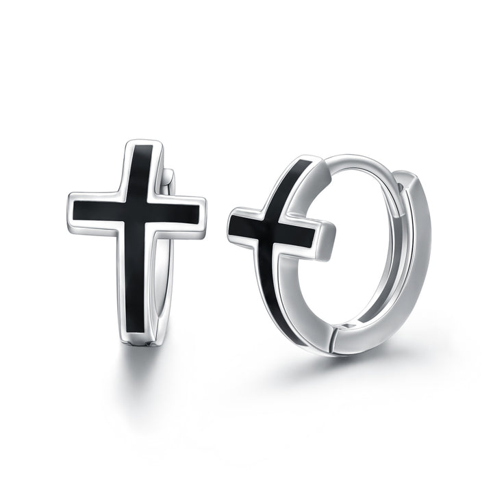 Sterling Silver Cross Hoop Earrings