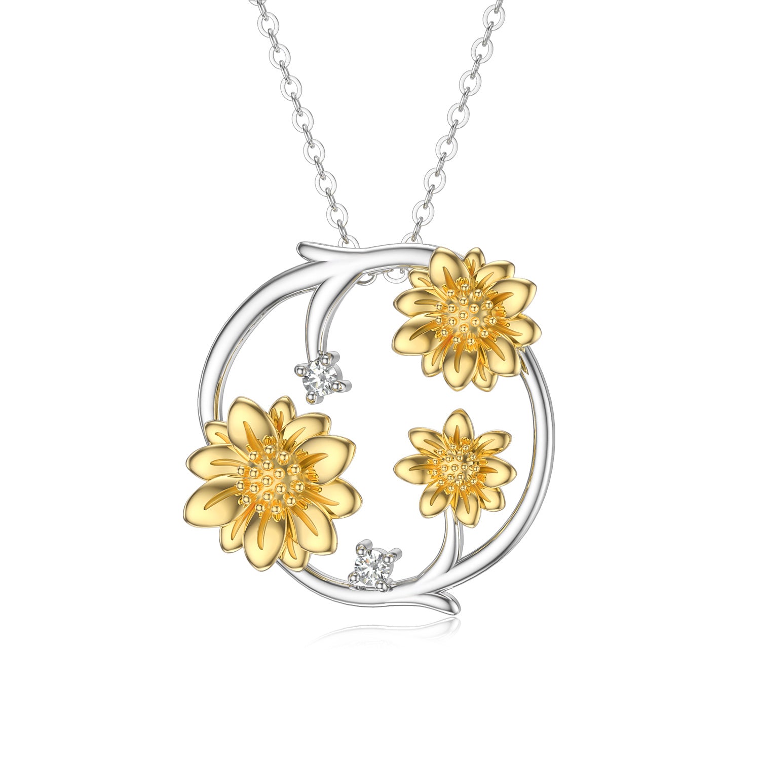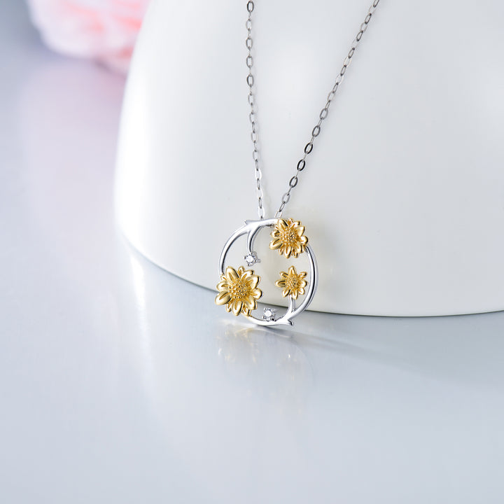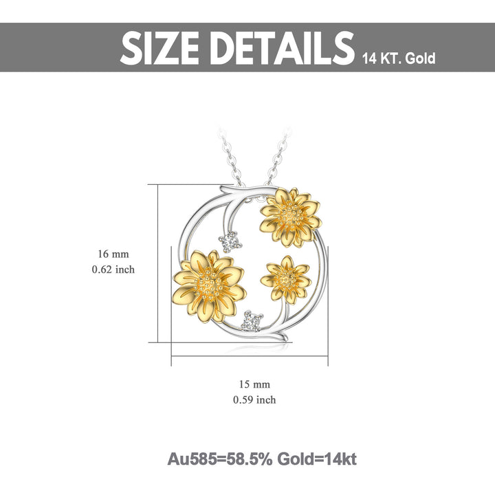 Crafted from 14K Gold (White Gold/Yellow Gold options), this Pendant Necklace boasts a captivating Sunflower Design adorned with brilliant Cubic Zirconia.