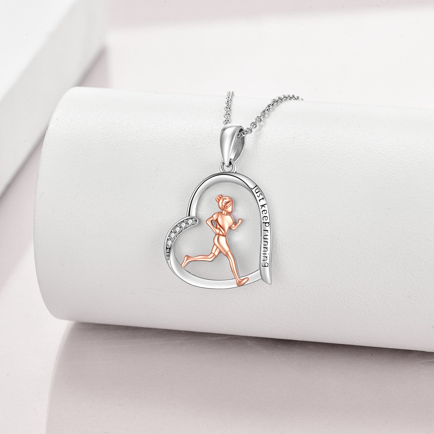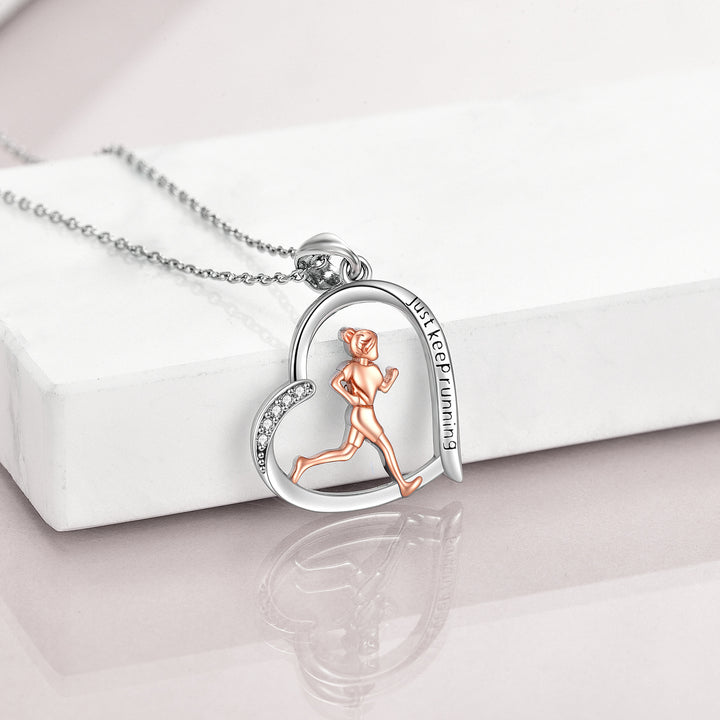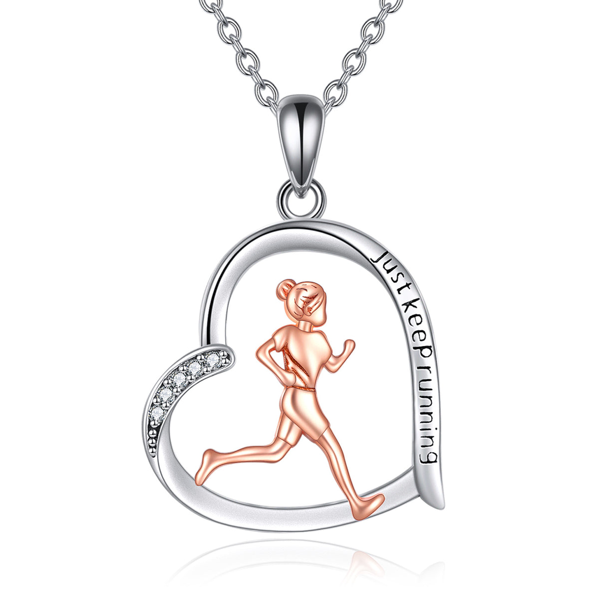 925 Sterling Silver Heart Runner Running Pendant Necklace For Women