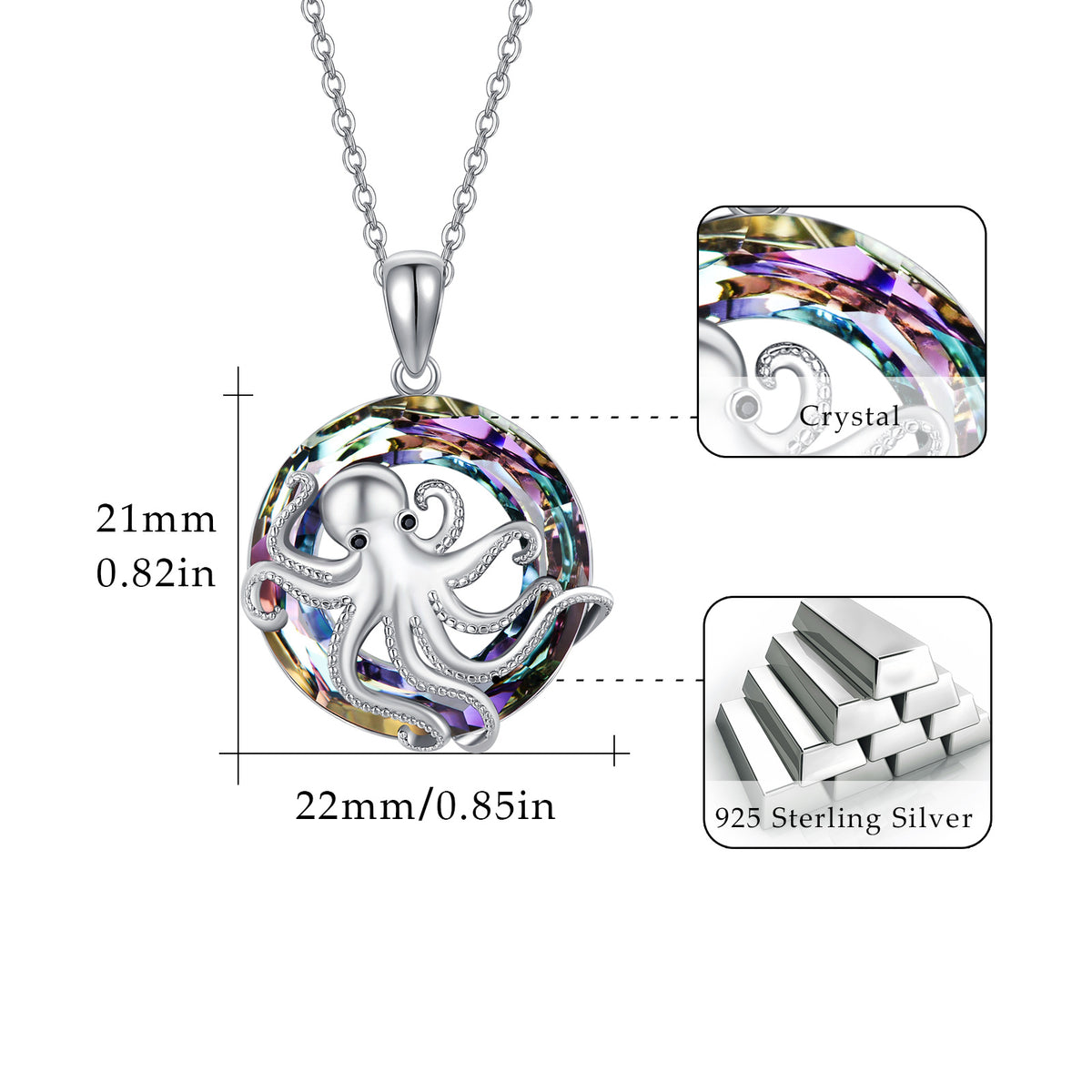 This Sterling Silver Crystal Octopus Pendant Necklace by YFN dives into elegance with its unique design for women. Intricately crafted from sterling silver with white gold plating, the mesmerizing octopus pendant is encrusted with mixed crystals for a dazzling effect. This piece is a must-have for adding luxury and sophistication to any occasion.