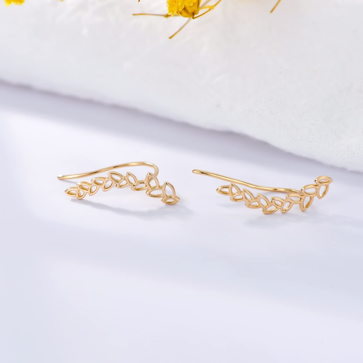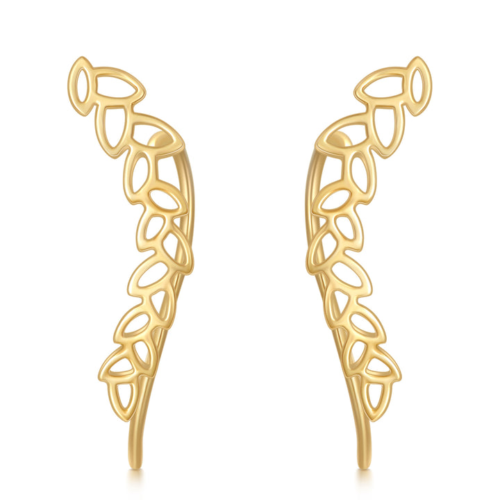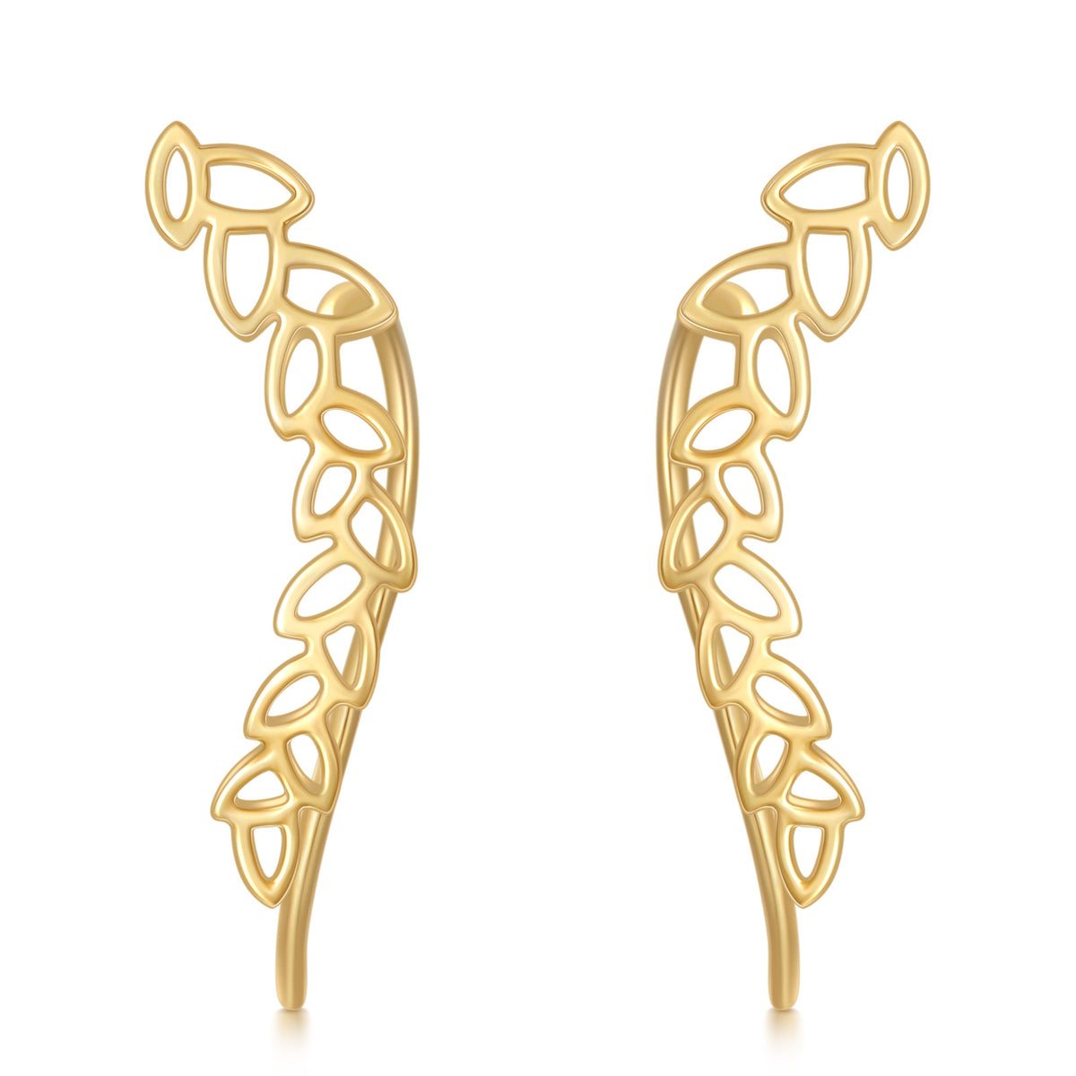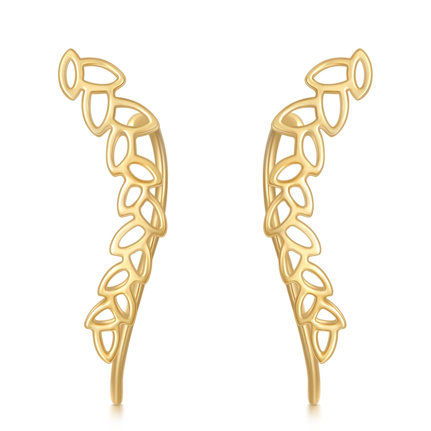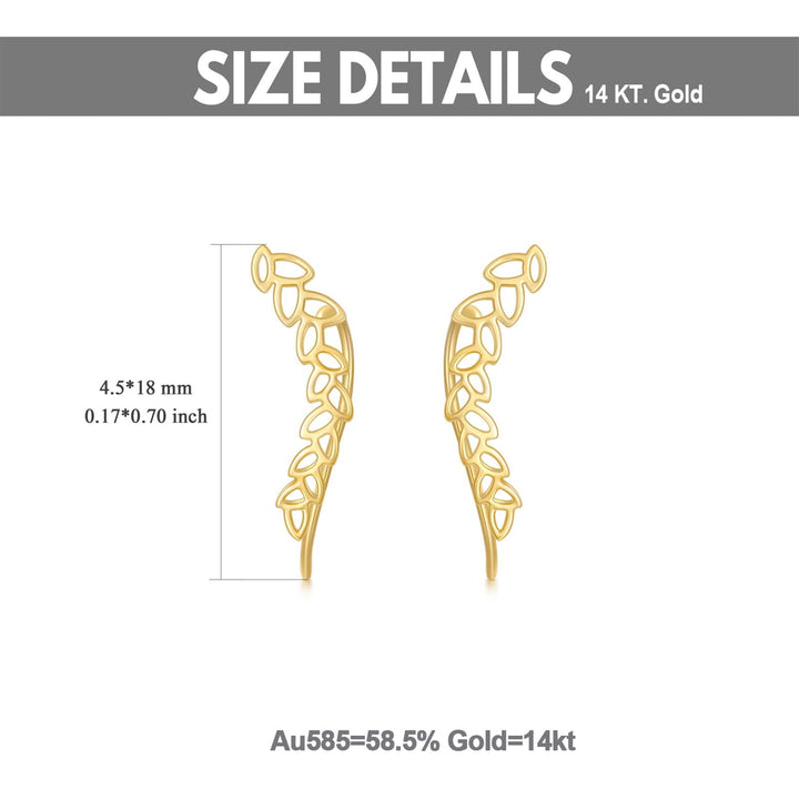 Crafted from solid 14K Gold. These are Climber Earrings featuring a Leaves motif and are entirely Stone-free.