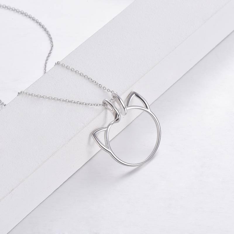 Sterling Silver Cat Ring Holder Pendant Necklace