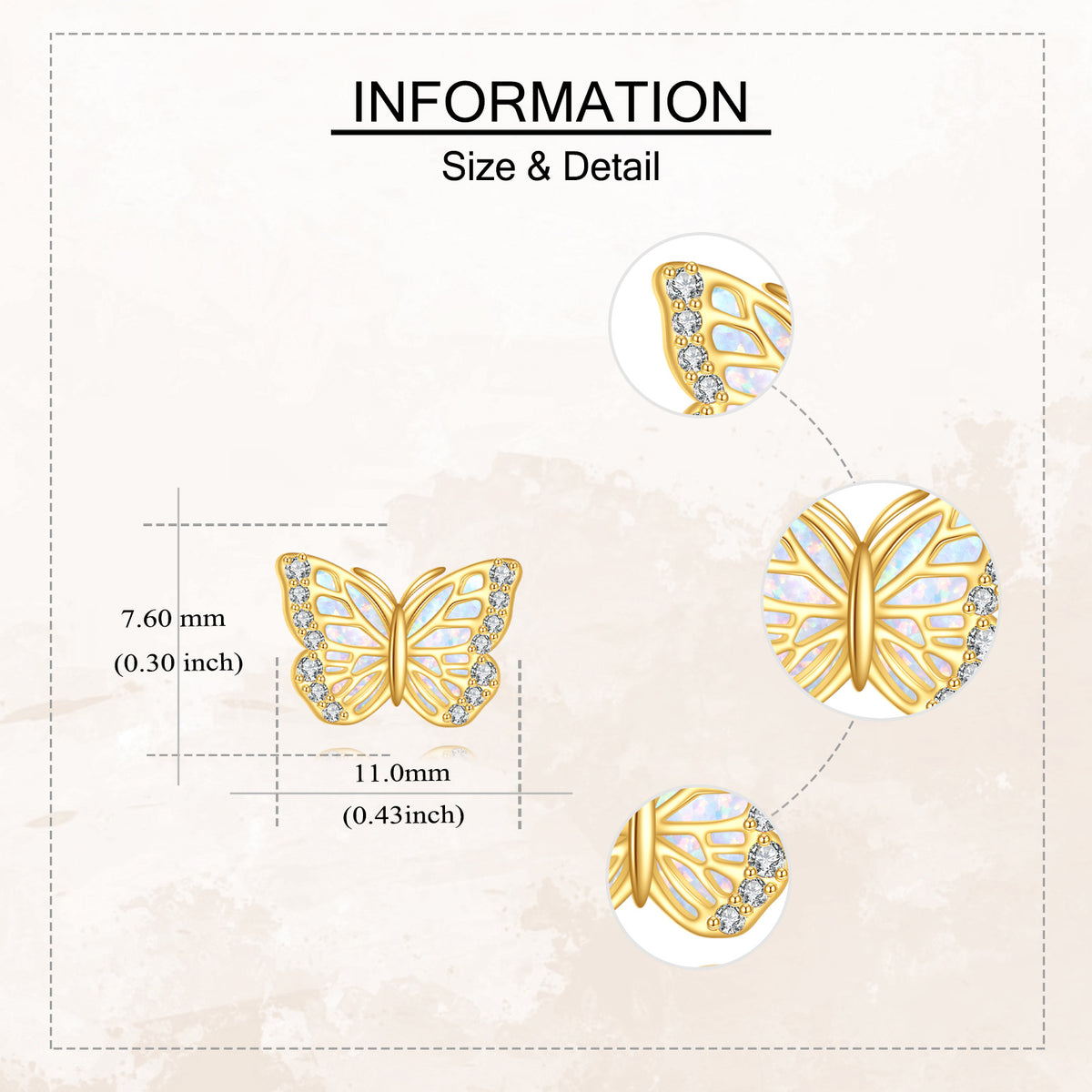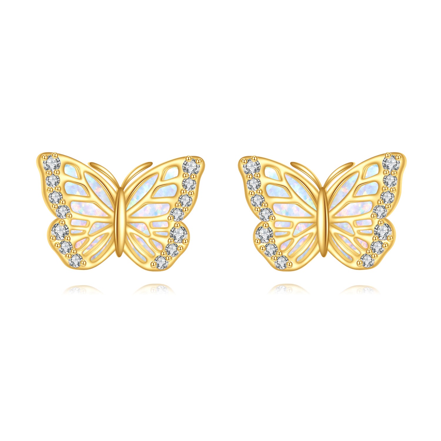14K Gold Cubic Zirconia & Opal Butterfly Stud Earrings