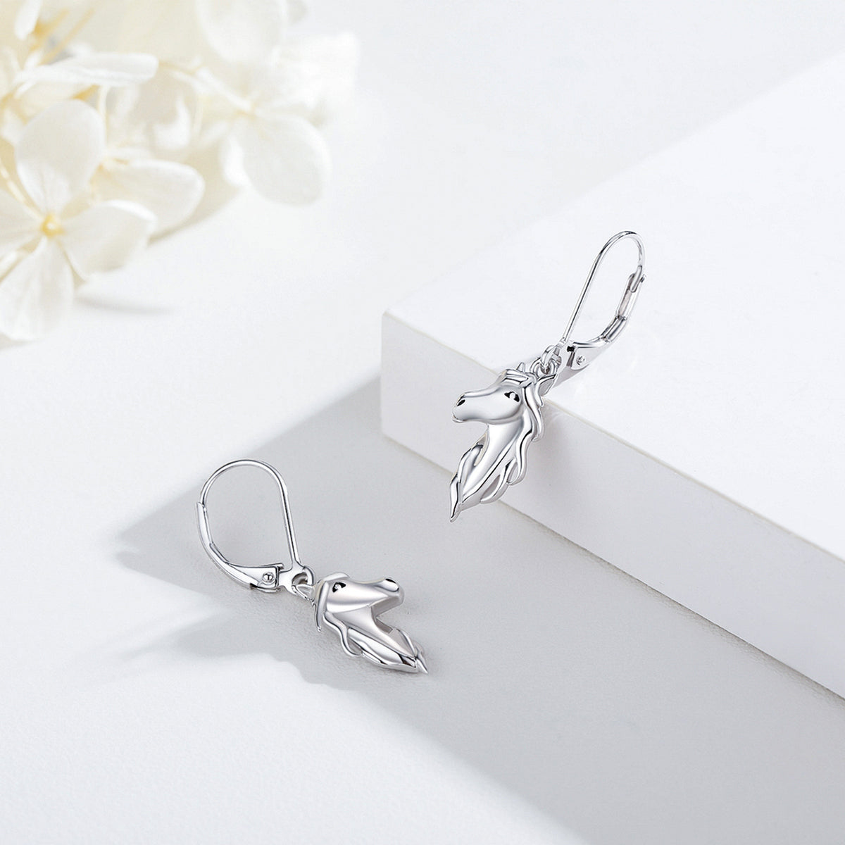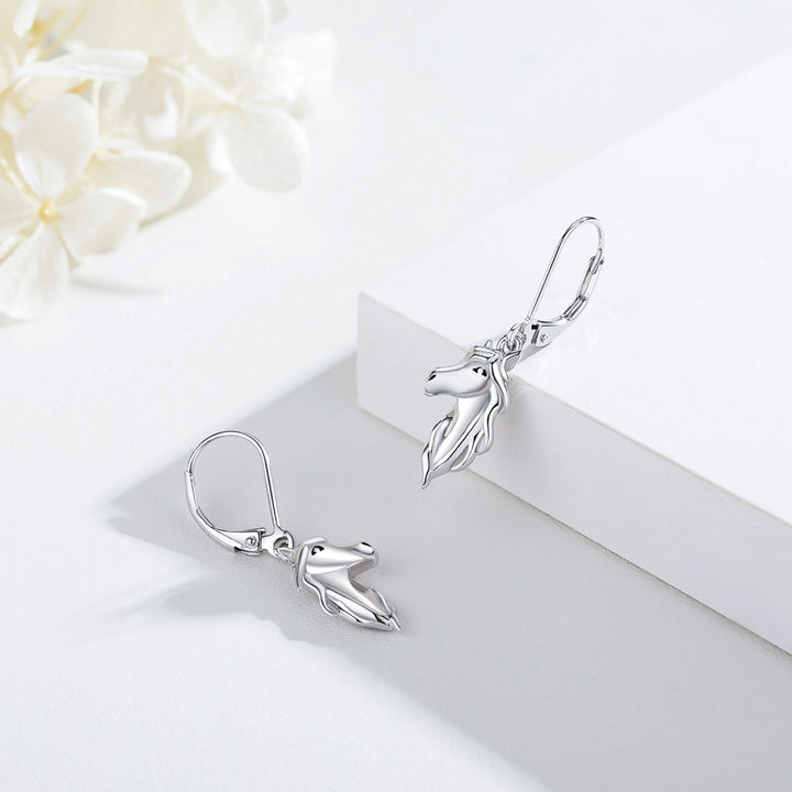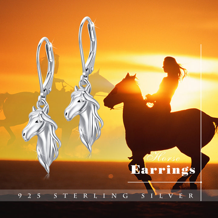 Sterling Silver Horse Lever-back Earrings