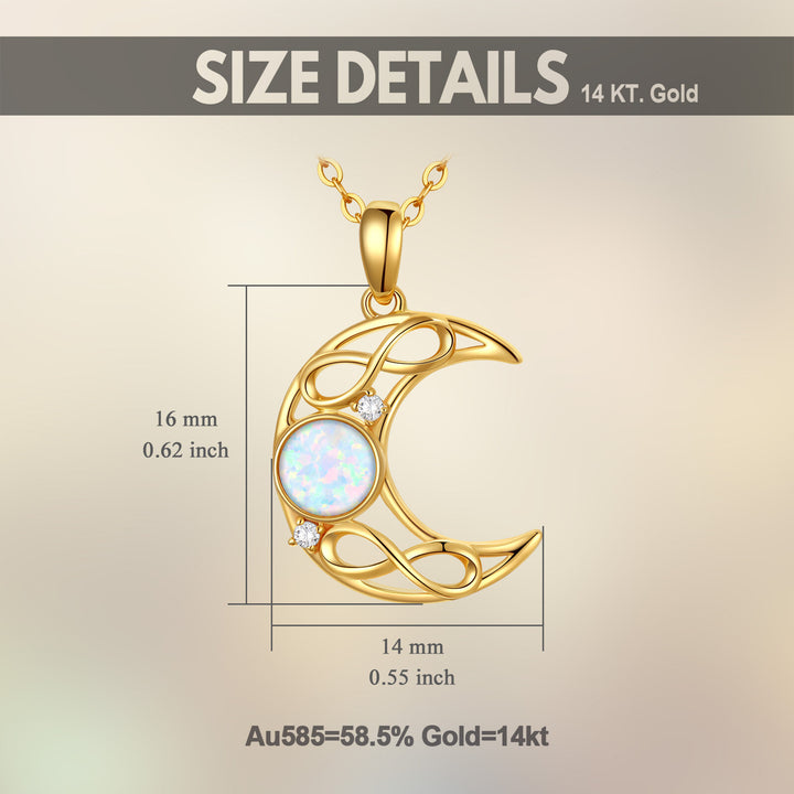 This Moon Pendant Necklace is Crafted from High-Quality 14K Gold, featuring a Delicate Moon Design, Intricately Set with Sparkling Cubic Zirconia and a Captivating Opal Center.