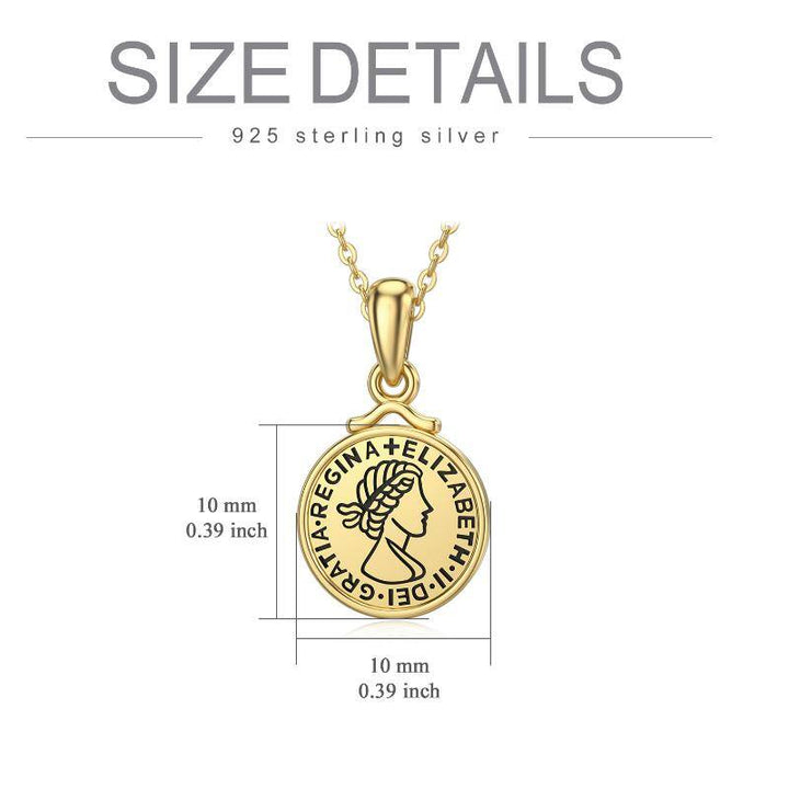 This 9K Gold Elizabeth II Coin Pendant Necklace by YFN celebrates heritage and refinement through its beautifully engraved portrait of Queen Elizabeth II. The minimalist, stone-free coin design evokes a sense of timeless grandeur, making it ideal for women who appreciate understated luxury rooted in history. Its polished finish and regal symbolism allow it to transition effortlessly from everyday wear to elevated styling, bringing a touch of royal elegance to any look.
