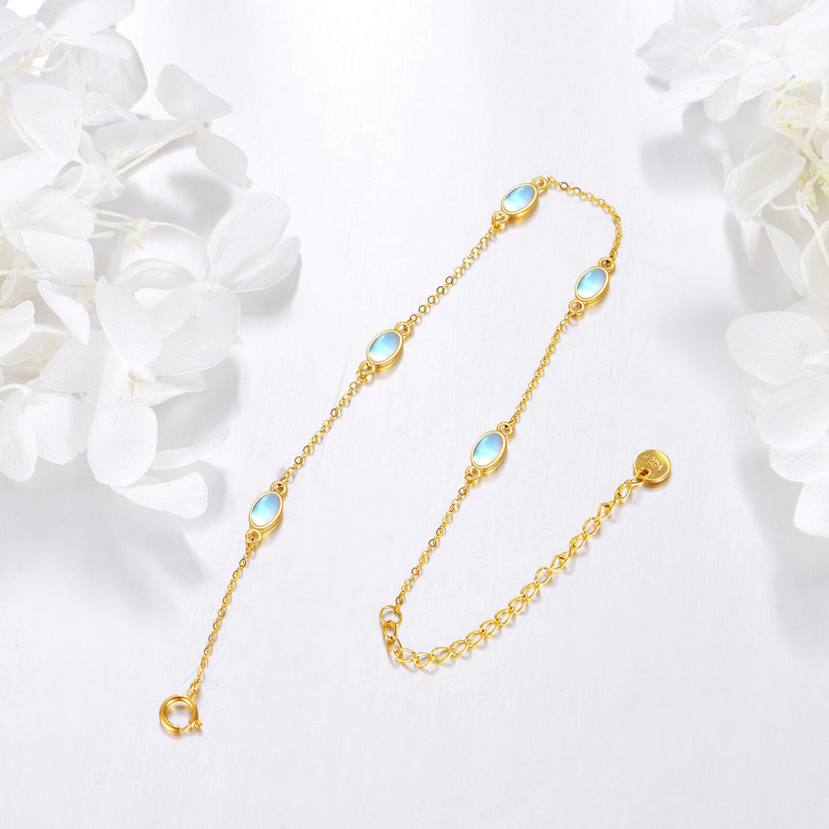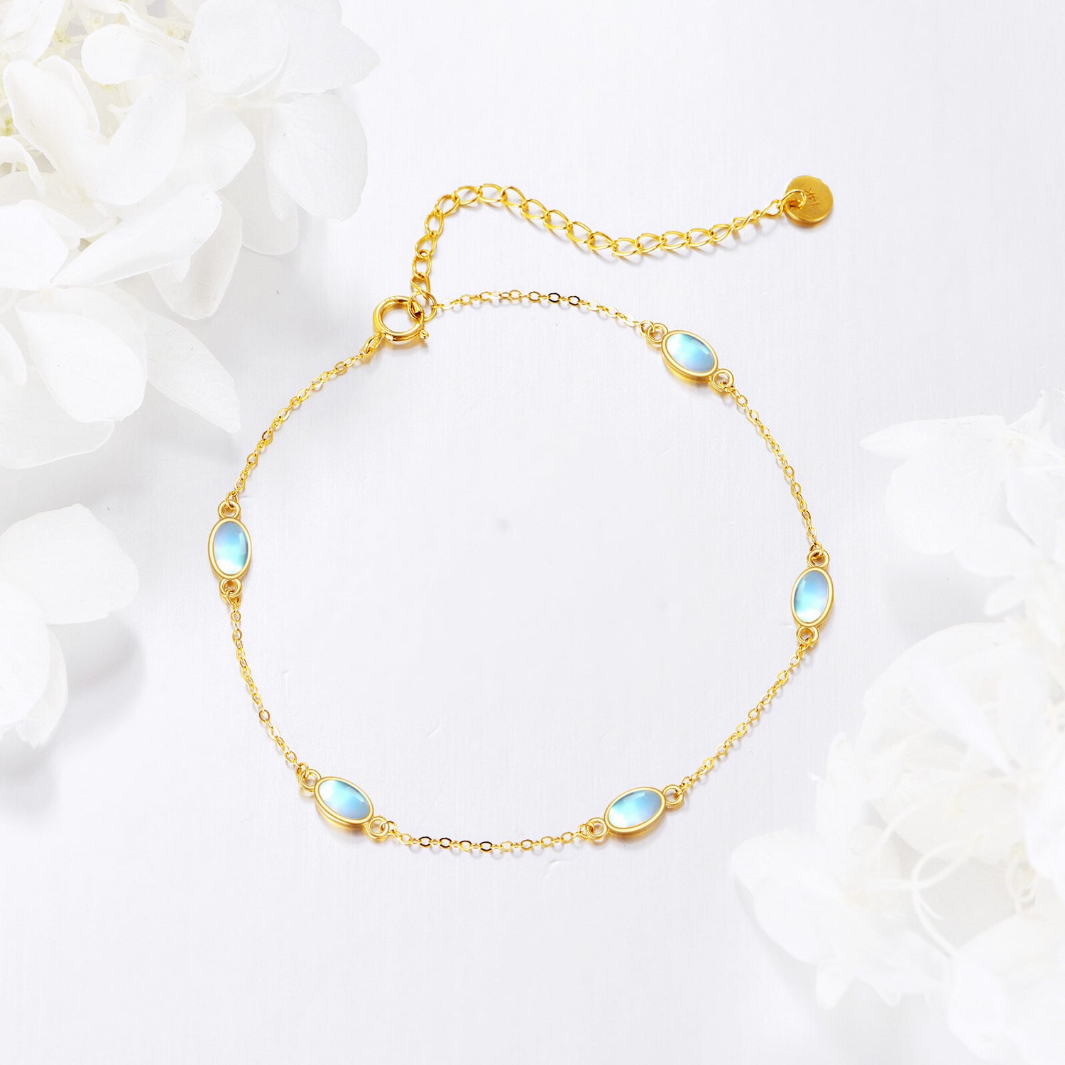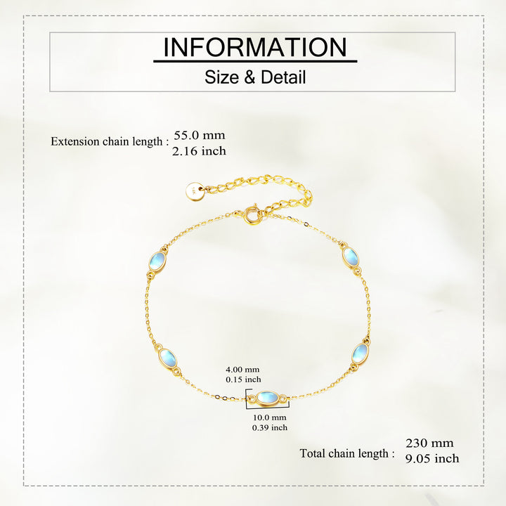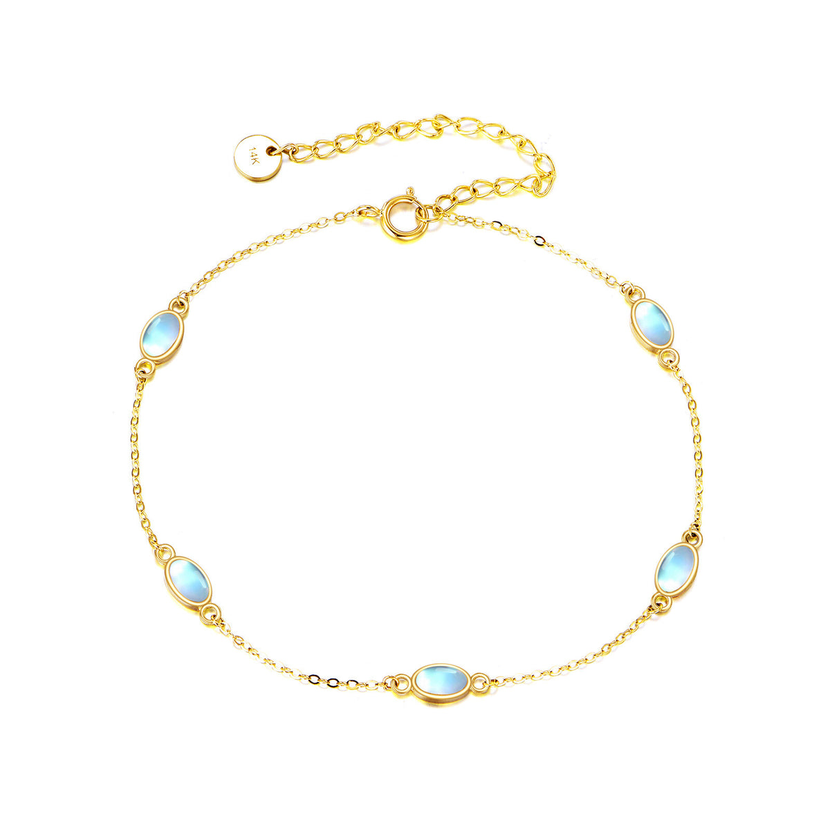 14K Yellow Gold Oval Moonstone Charm Bracelet For Women