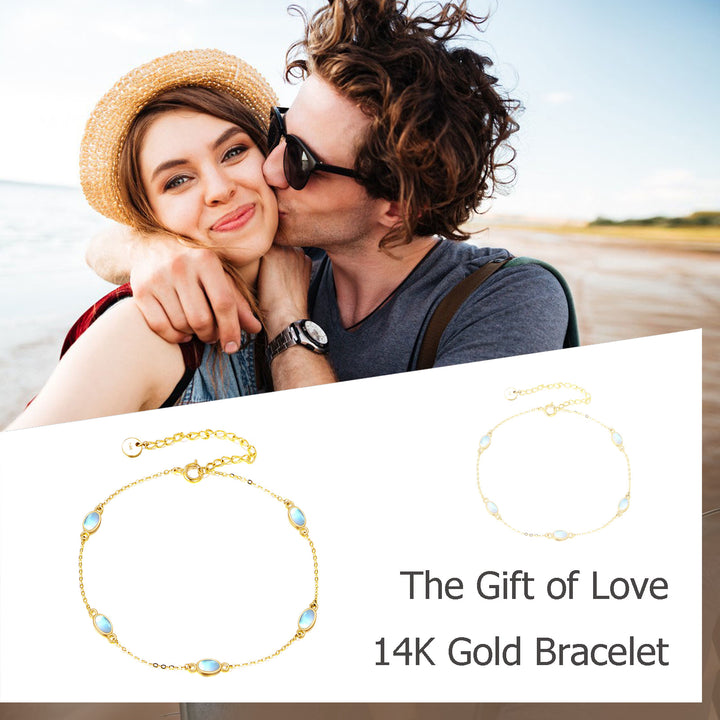 This 14K Gold Moonstone Charm Bracelet by YFN exudes ethereal elegance with its enchanting blue moonstone set in an oval charm. Crafted in luminous 14K gold, it offers a timeless blend of sophistication and celestial beauty, perfect for women who adore graceful, meaningful jewelry.