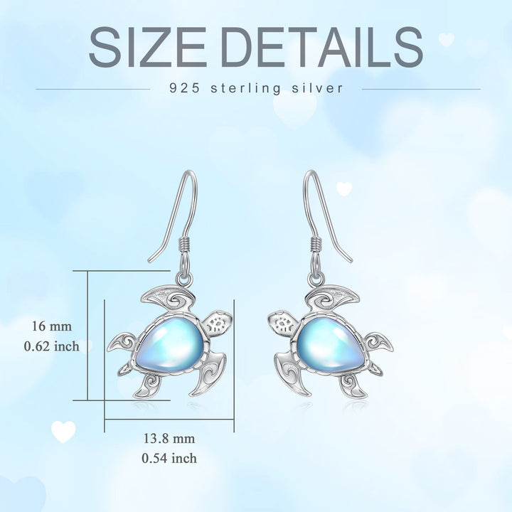 Sterling Silver Moonstone Sea Turtle Drop Earrings