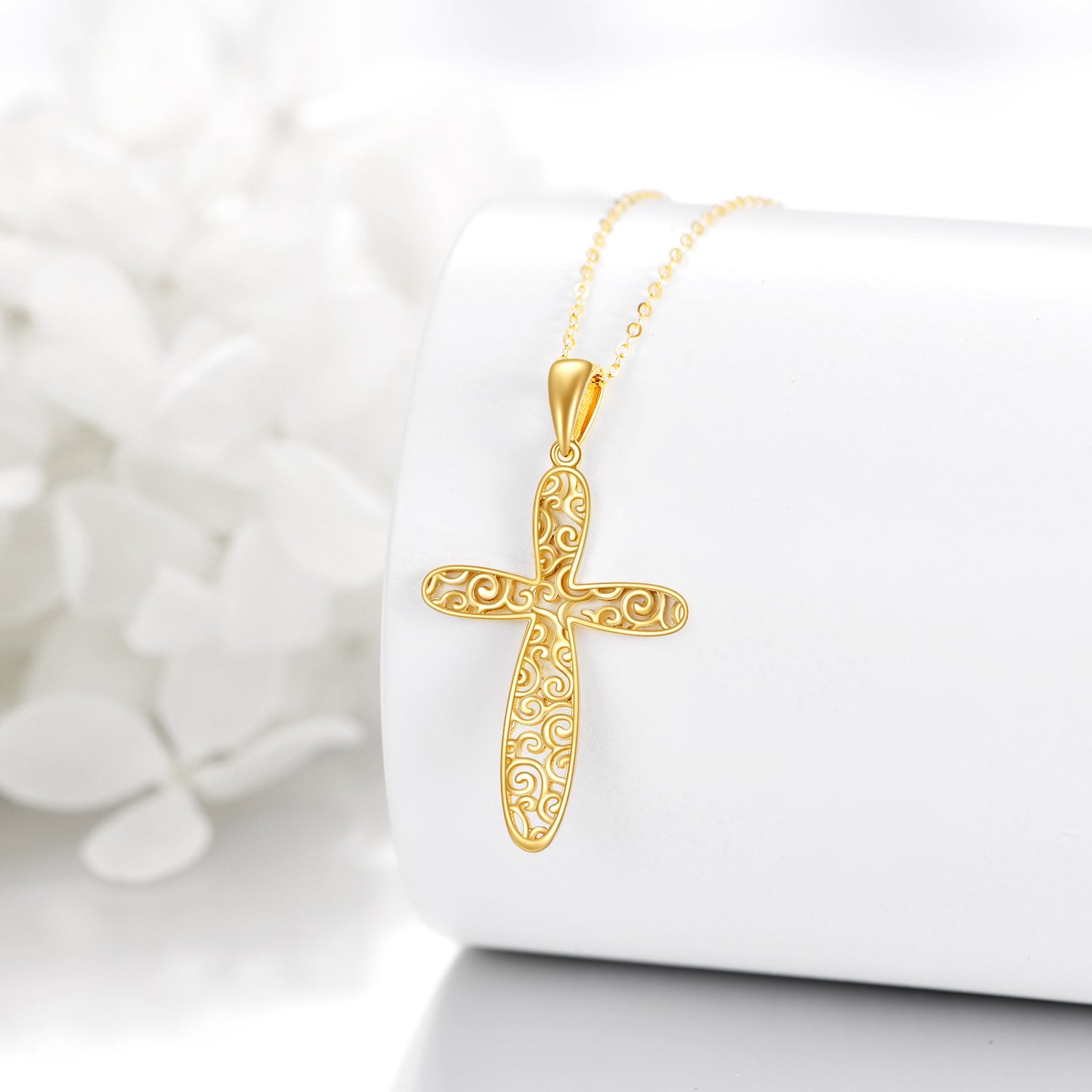 Crafted in 14K gold with a filigree-style cross pendant. Includes coordinating 14K gold chain. Dimensions and chain length per manufacturer details.