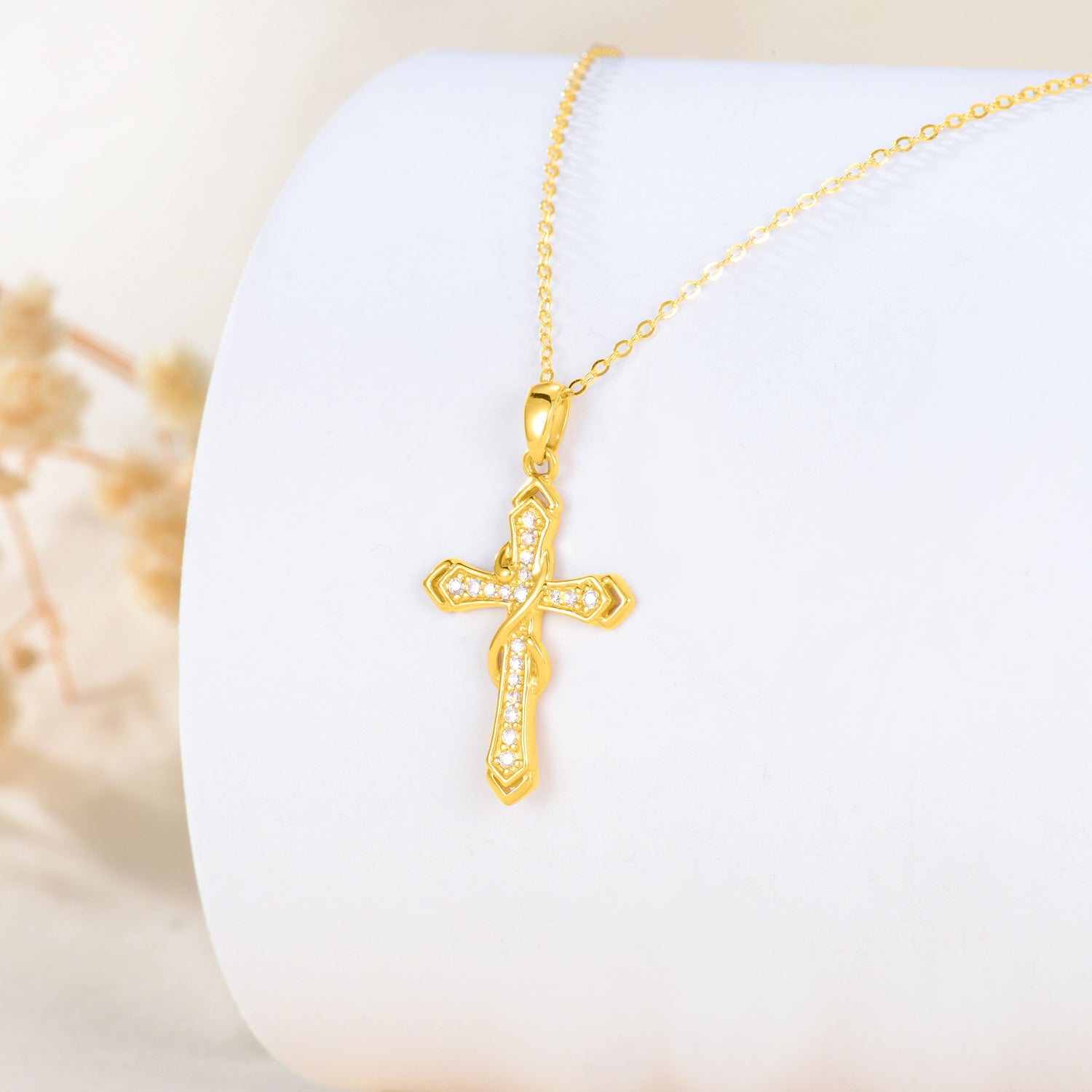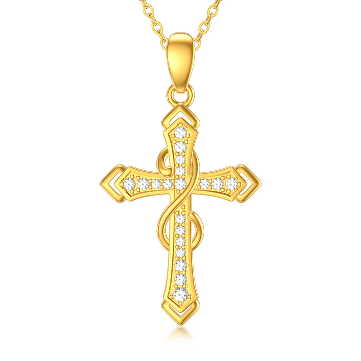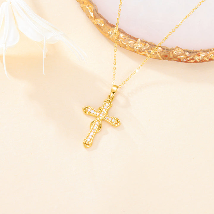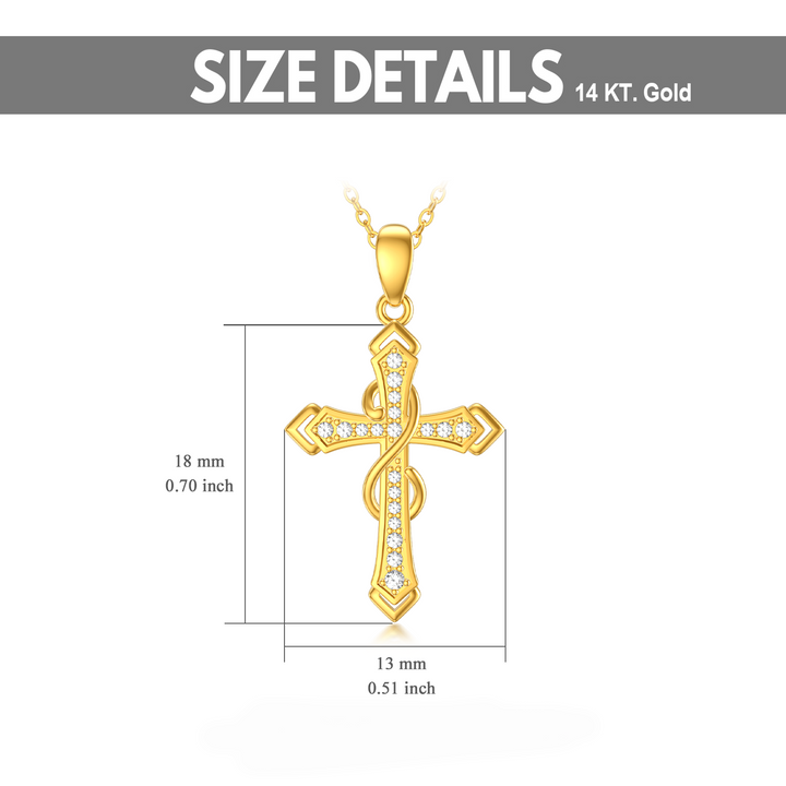14K Gold Cubic Zirconia Cross Infinity Symbol Necklace for Women