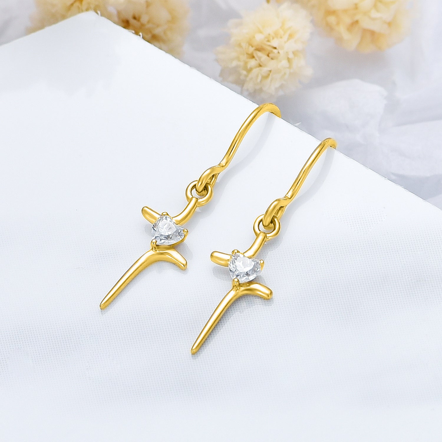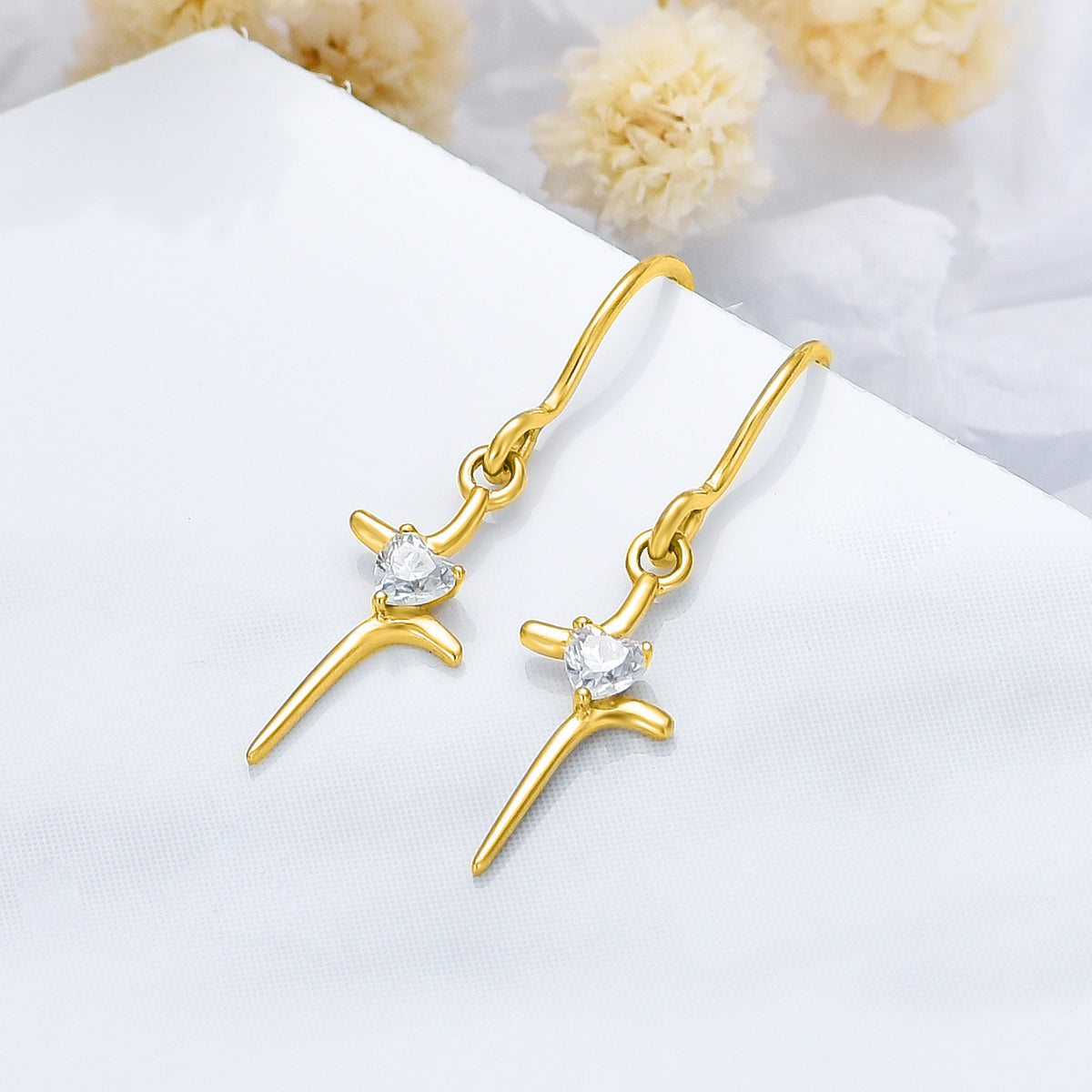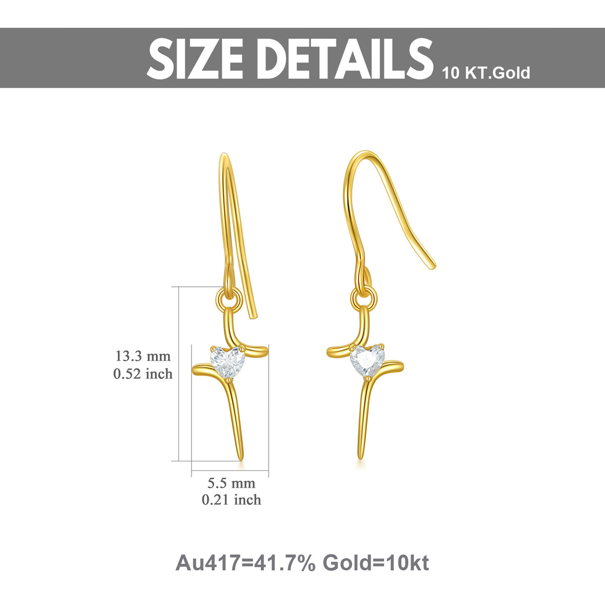 10K Gold Cubic Zirconia Cross Drop Earrings
