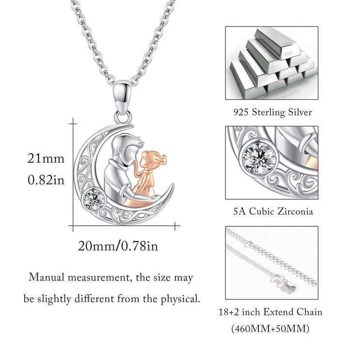 This Circular Cubic Zirconia Father & Daughter Celtic Knot With Moon Pendant Necklace by YFN is the perfect blend of sentimentality and timeless elegance. Crafted from Sterling silver and available in silver and Rose gold finishes, this circular pendant is adorned with sparkling Cubic zirconia and intricate Celtic knot and moon elements, symbolizing infinite bonds and ancient allure. The touching father & daughter motif imbues the piece with emotional depth, ideal for the contemporary woman who values both style and substance.