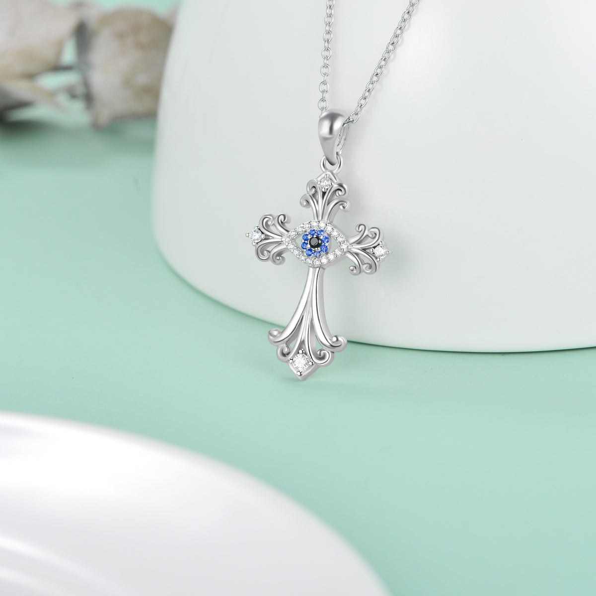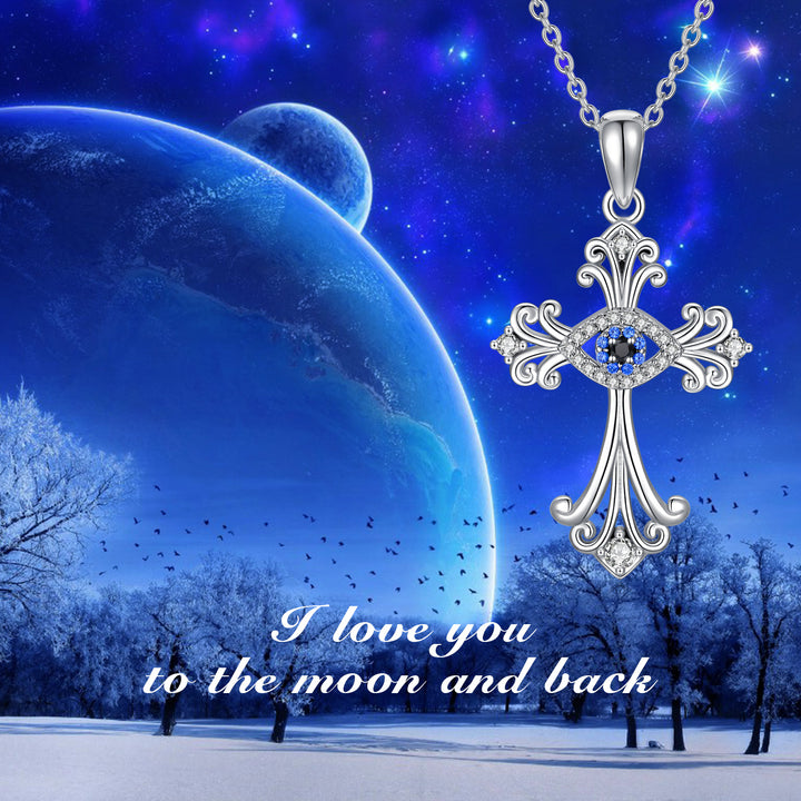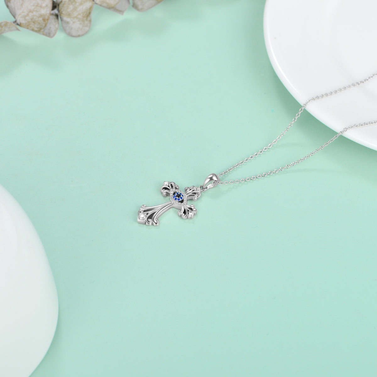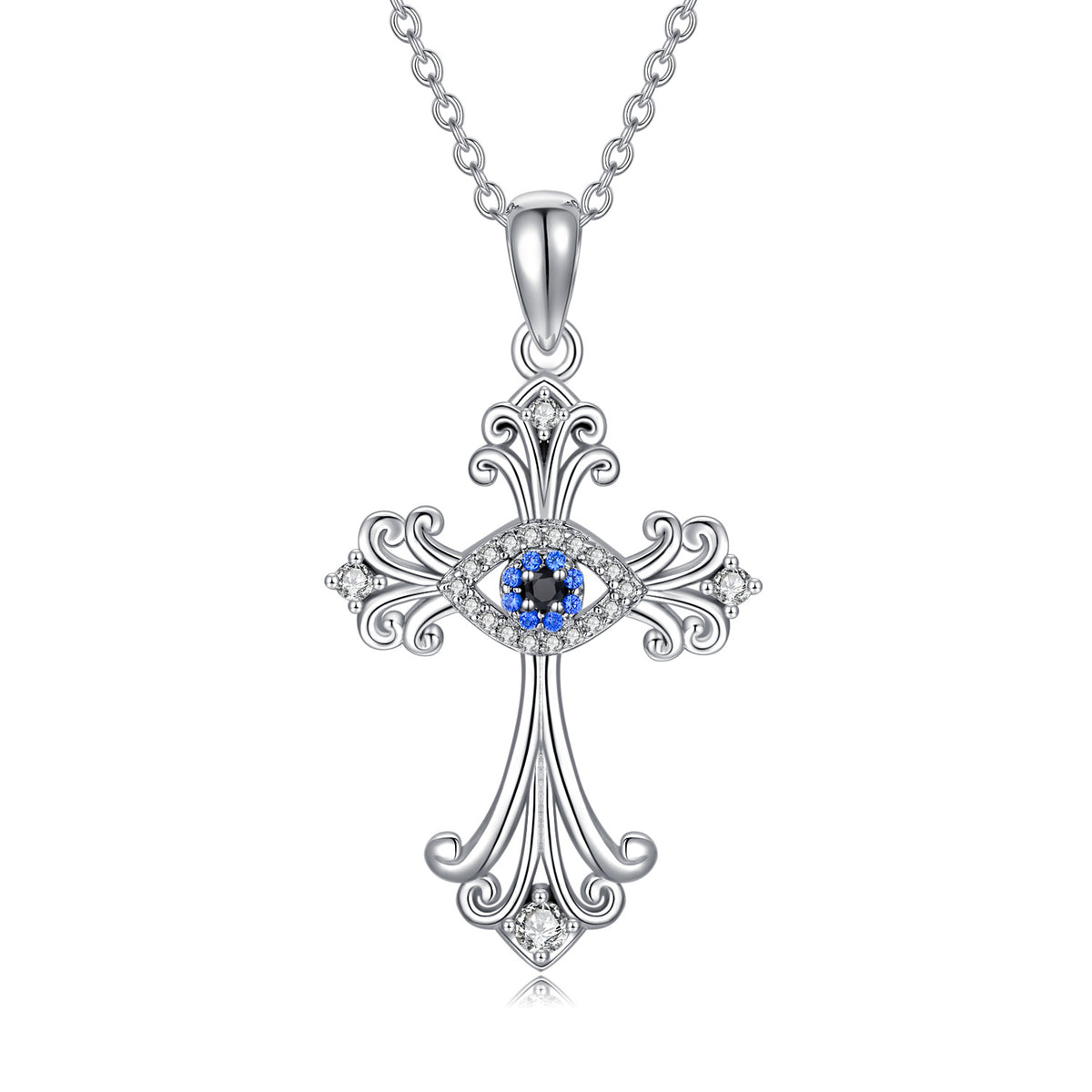 Sterling Silver Round Cubic Zirconia Cross Pendant Necklace