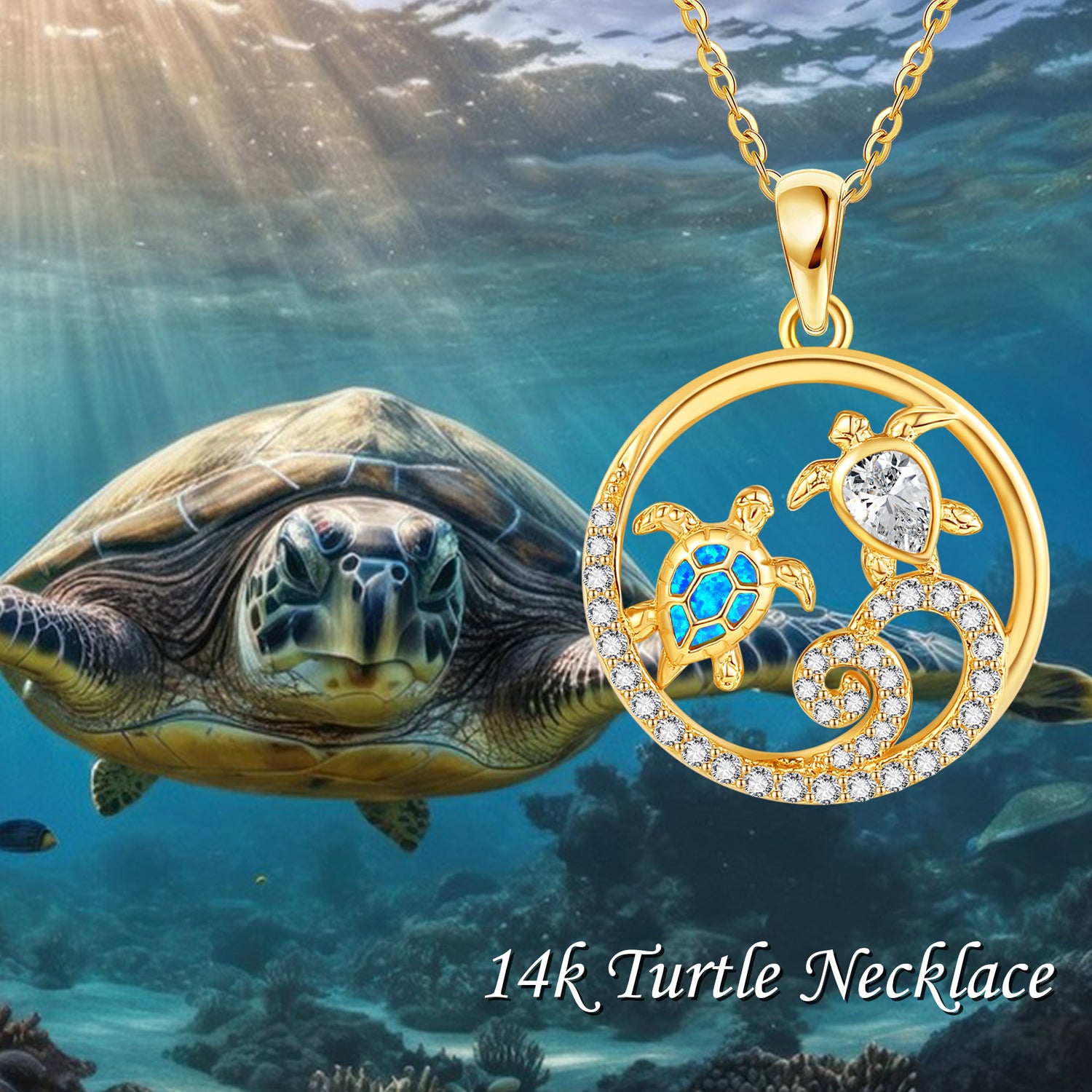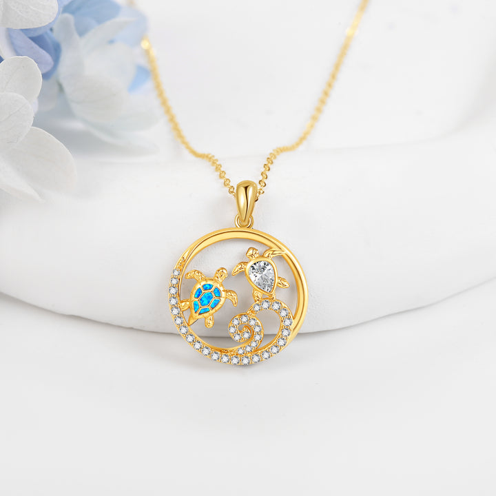 This 14K Gold Cubic Zirconia Sea Turtle Pendant Necklace by YFN is an elegant necklace for women. Crafted from premium 14K Gold, it features a captivating sea turtle charm intricately embedded with brilliant Cubic Zirconia stones, offering durability and sophistication.