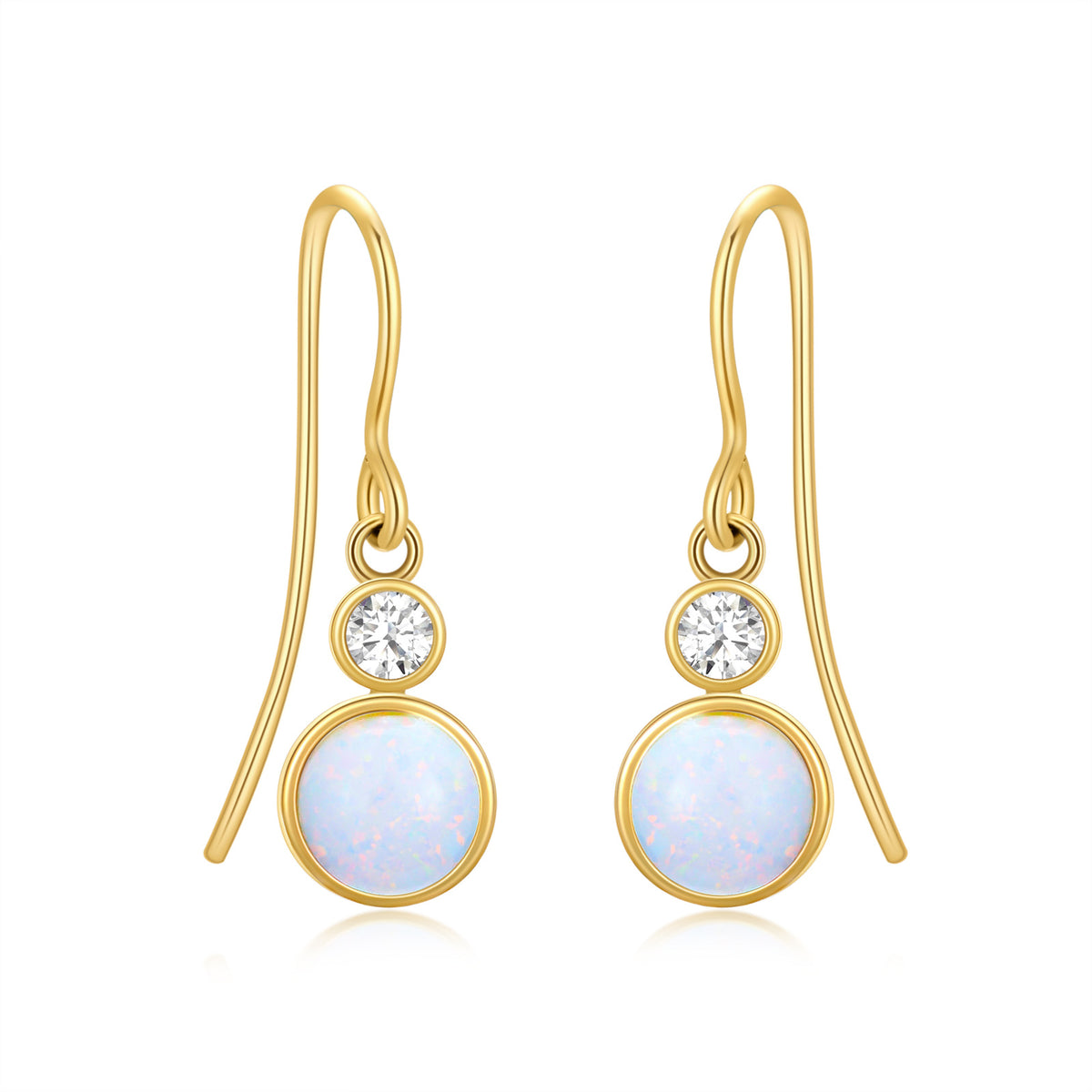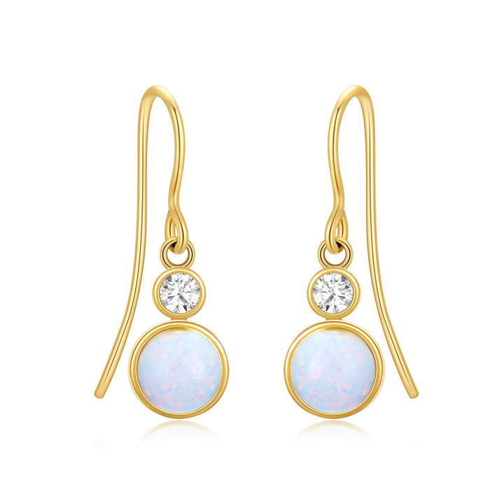 14K Gold Opal Round Drop Earrings