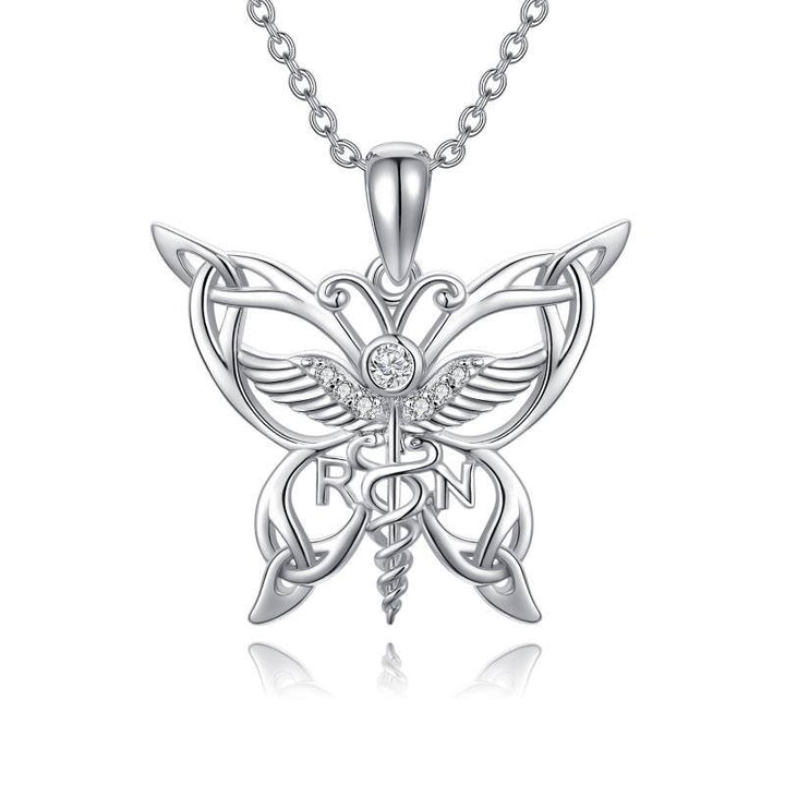 This Sterling Silver Round Butterfly Pendant Necklace by YFN is a stone-free, elegant accessory for women. Meticulously crafted from premium Sterling Silver and adorned with a sophisticated White Gold Plating, the round pendant's delicate butterfly motif is the centerpiece, ensuring lasting shine and refined craftsmanship.