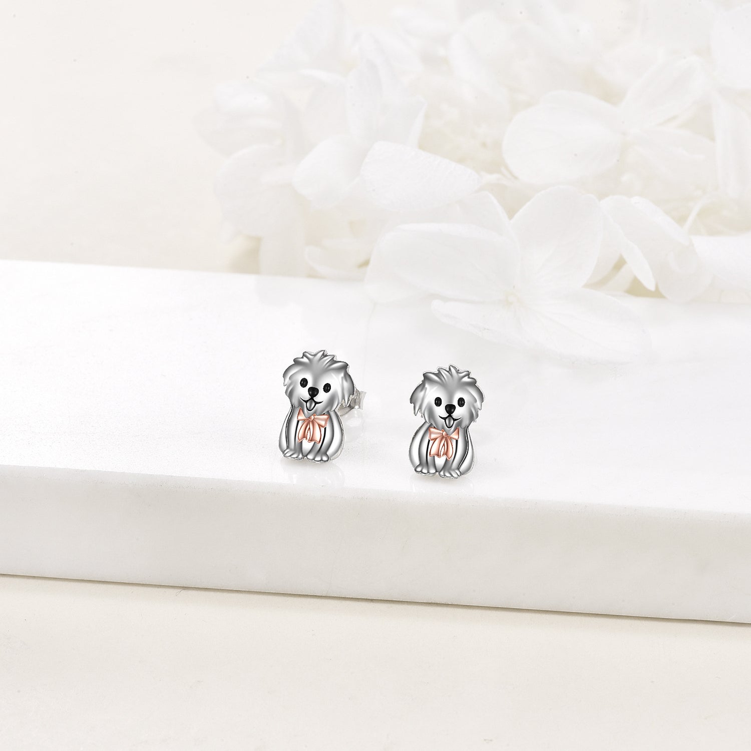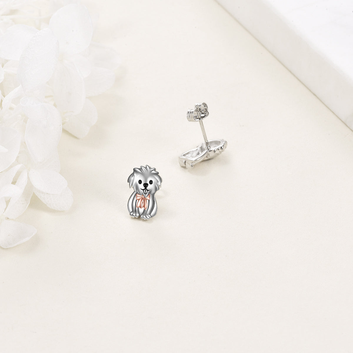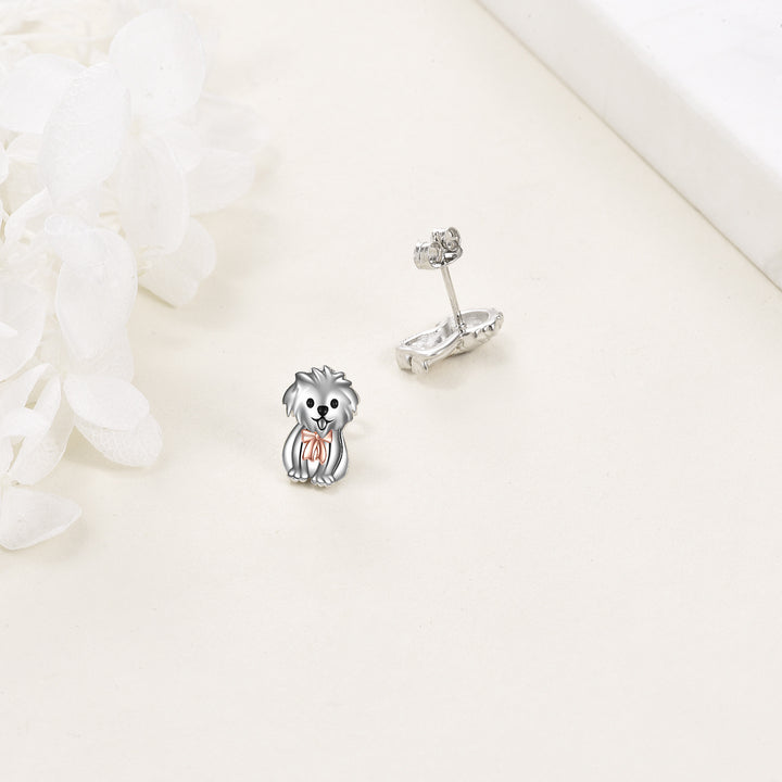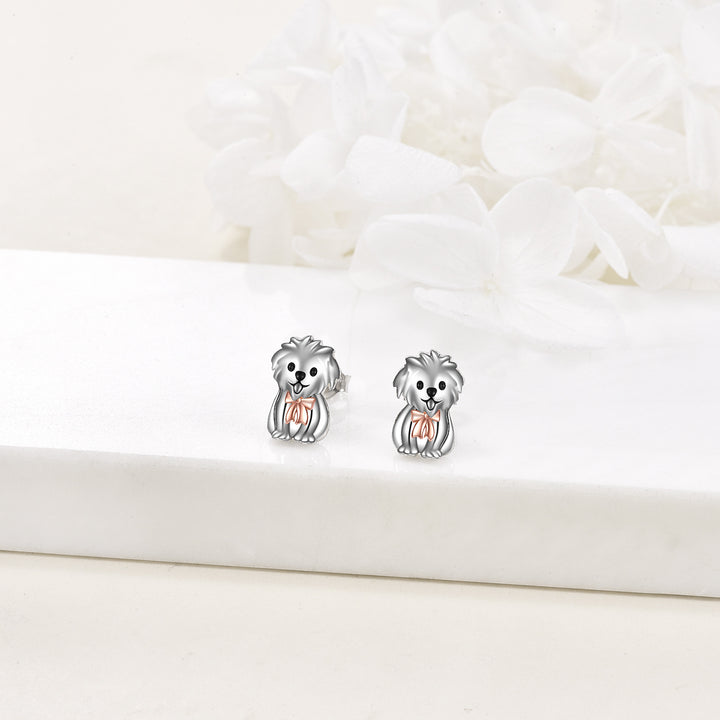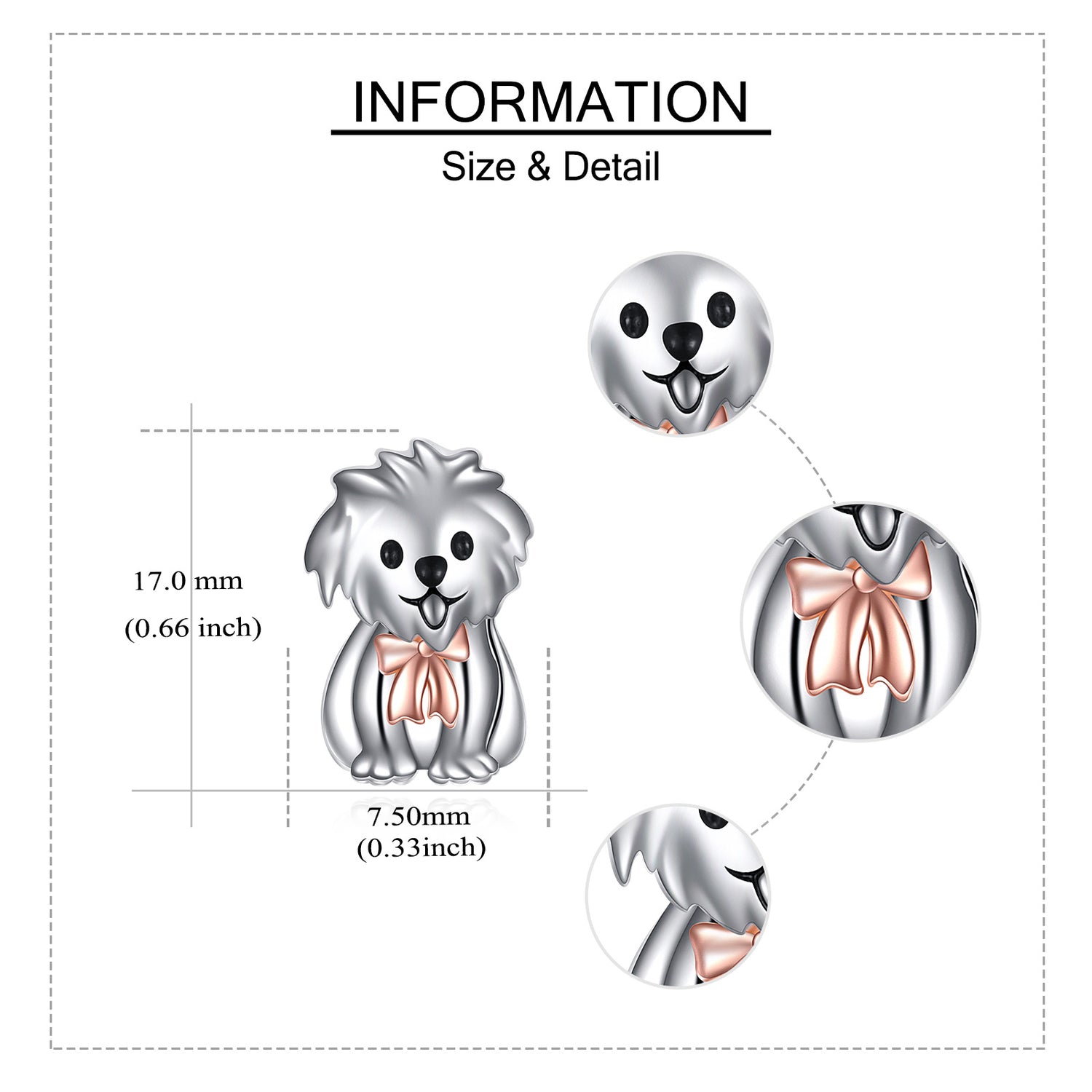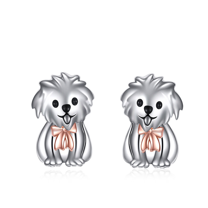 Crafted from Sterling Silver with Silver and Rose Gold accents (Two-Tone). These are Stud Earrings featuring a Dog design (no stones).