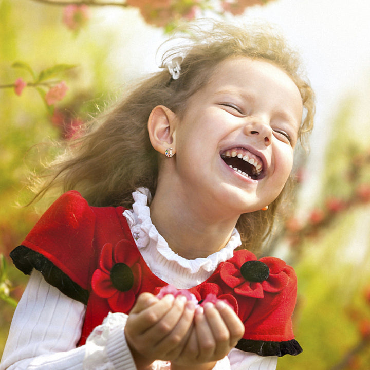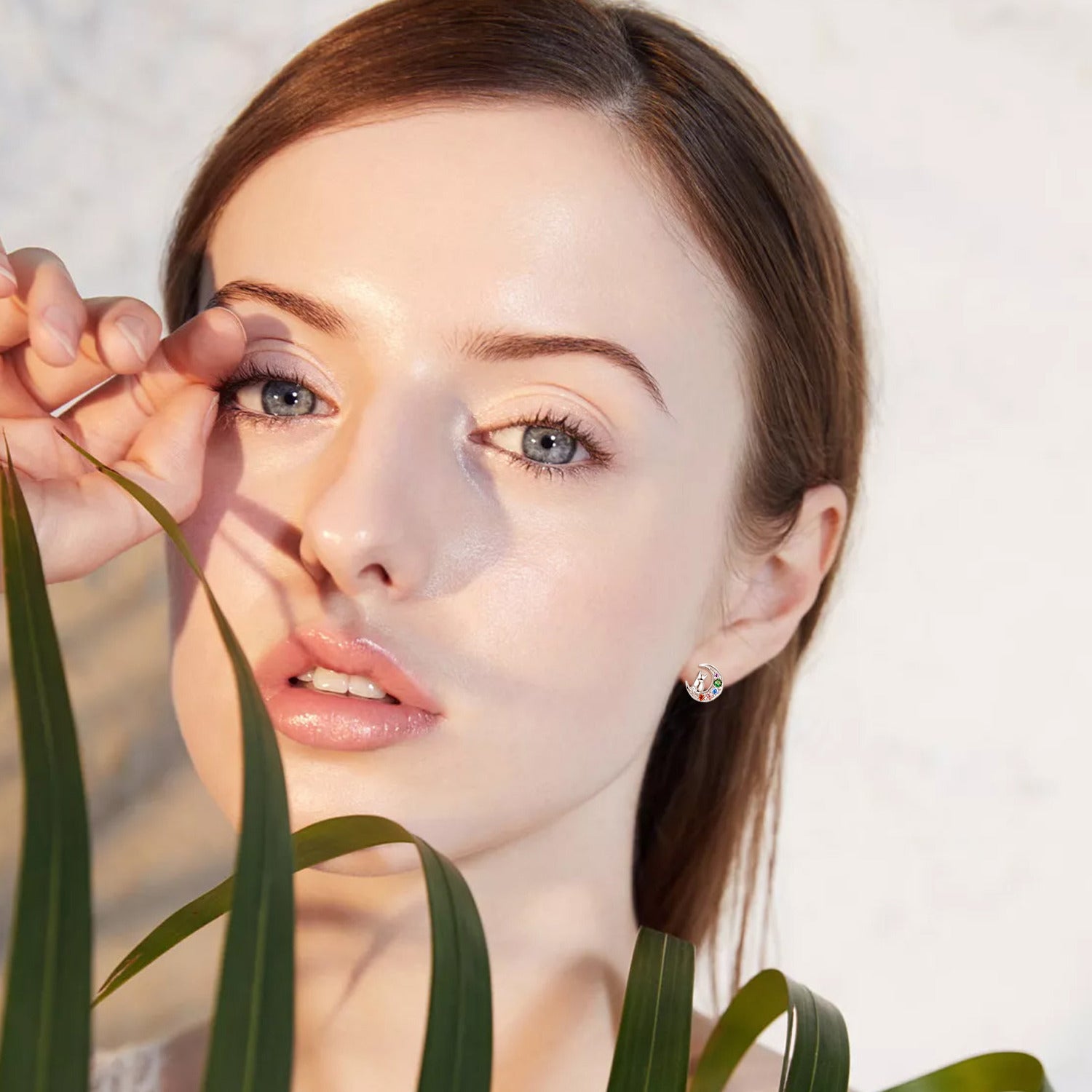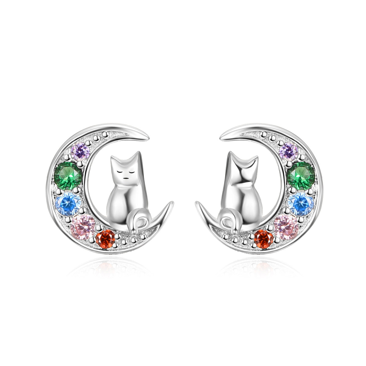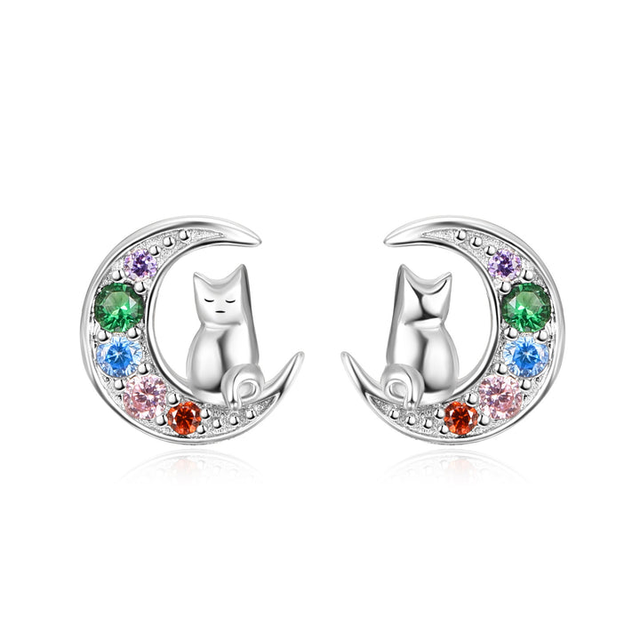 Sterling Silver Cubic Zirconia Cat & Moon Stud Earrings