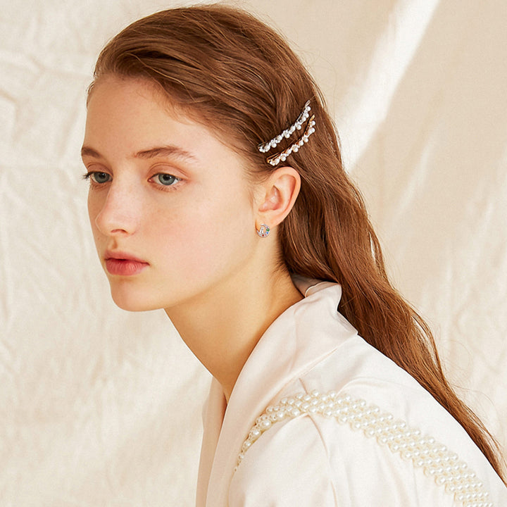 These stud earrings are crafted from Sterling Silver with a lustrous White Gold Plated finish and are set with brilliant Cubic Zirconia stones, securing with friction-back posts.