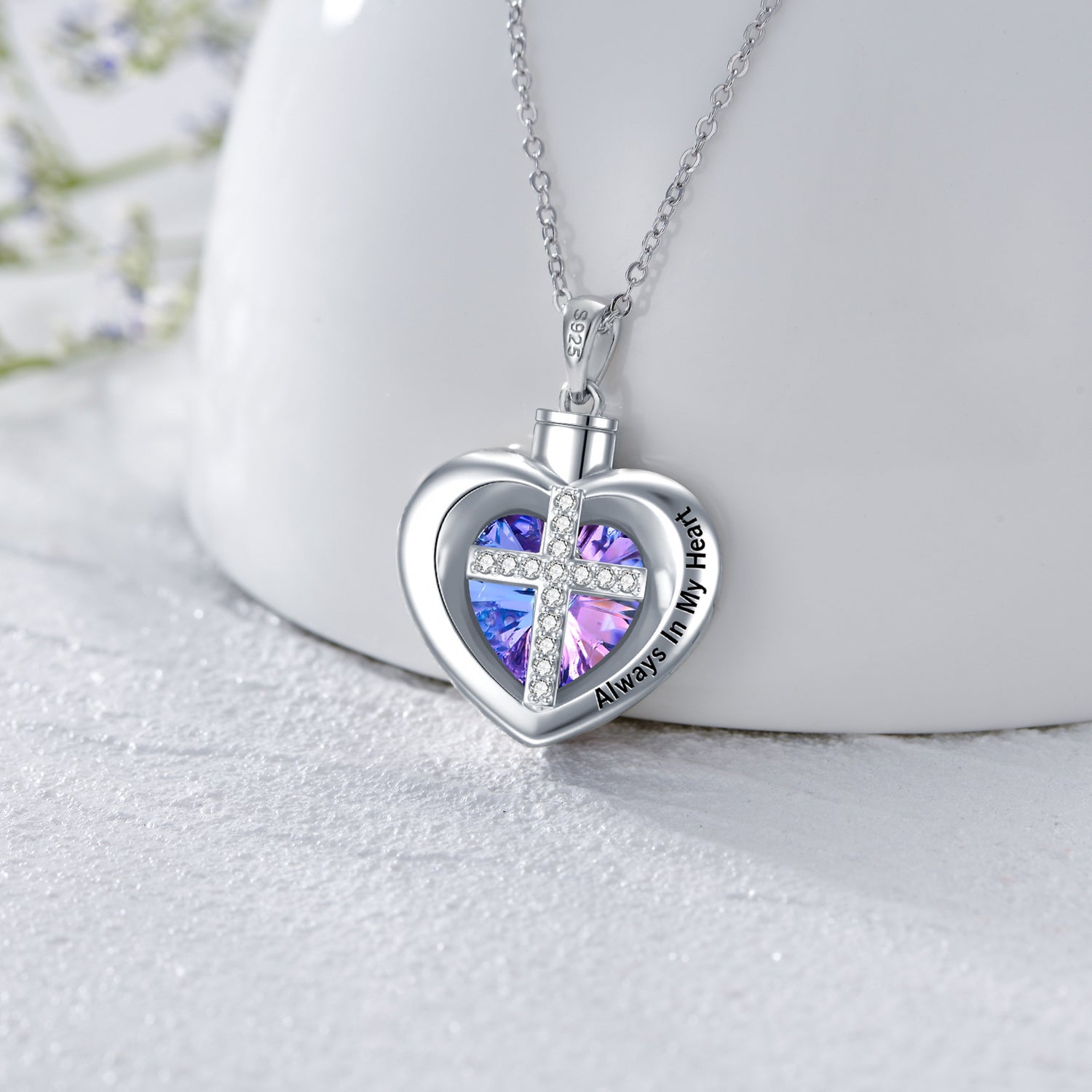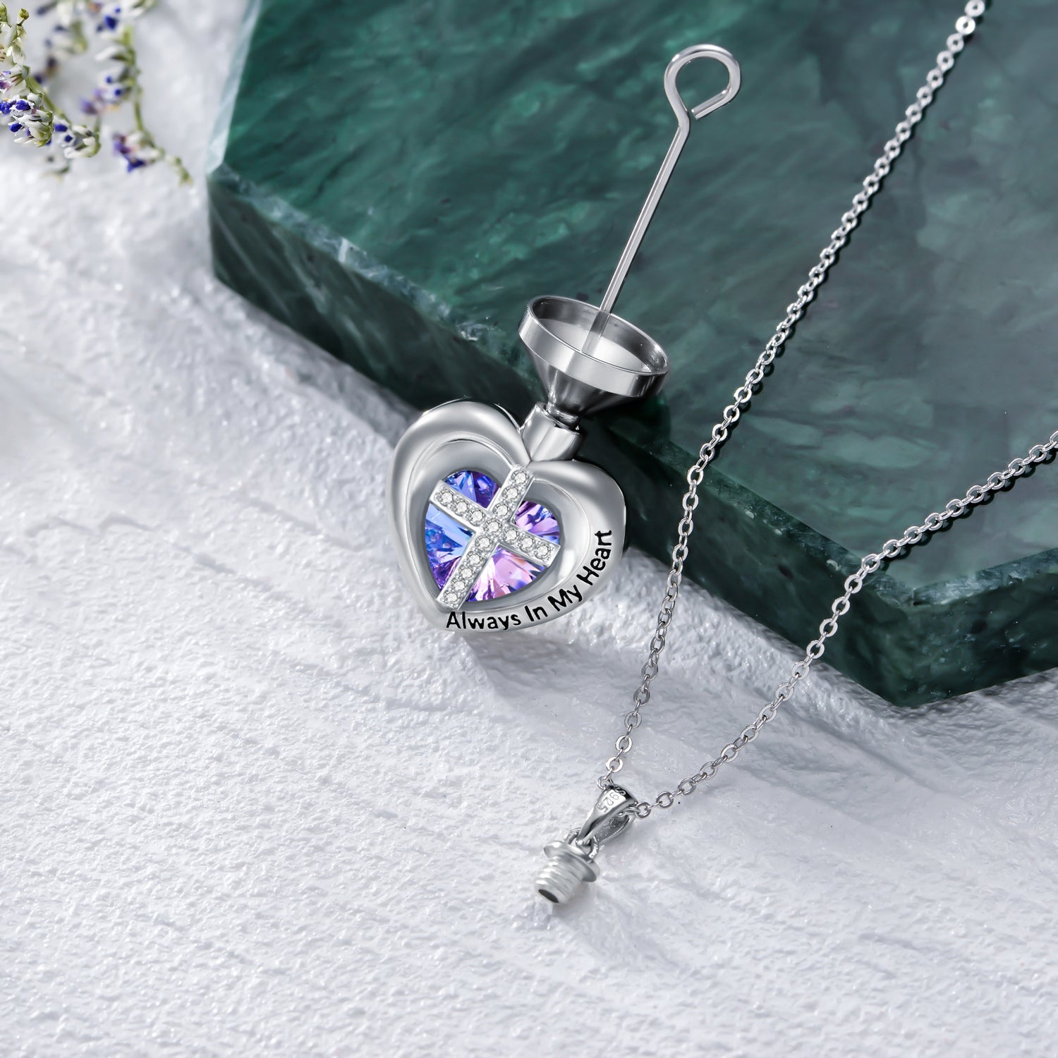 Sterling Silver Heart Crystal Cross Urn Necklace For Ashes Always In My Heart