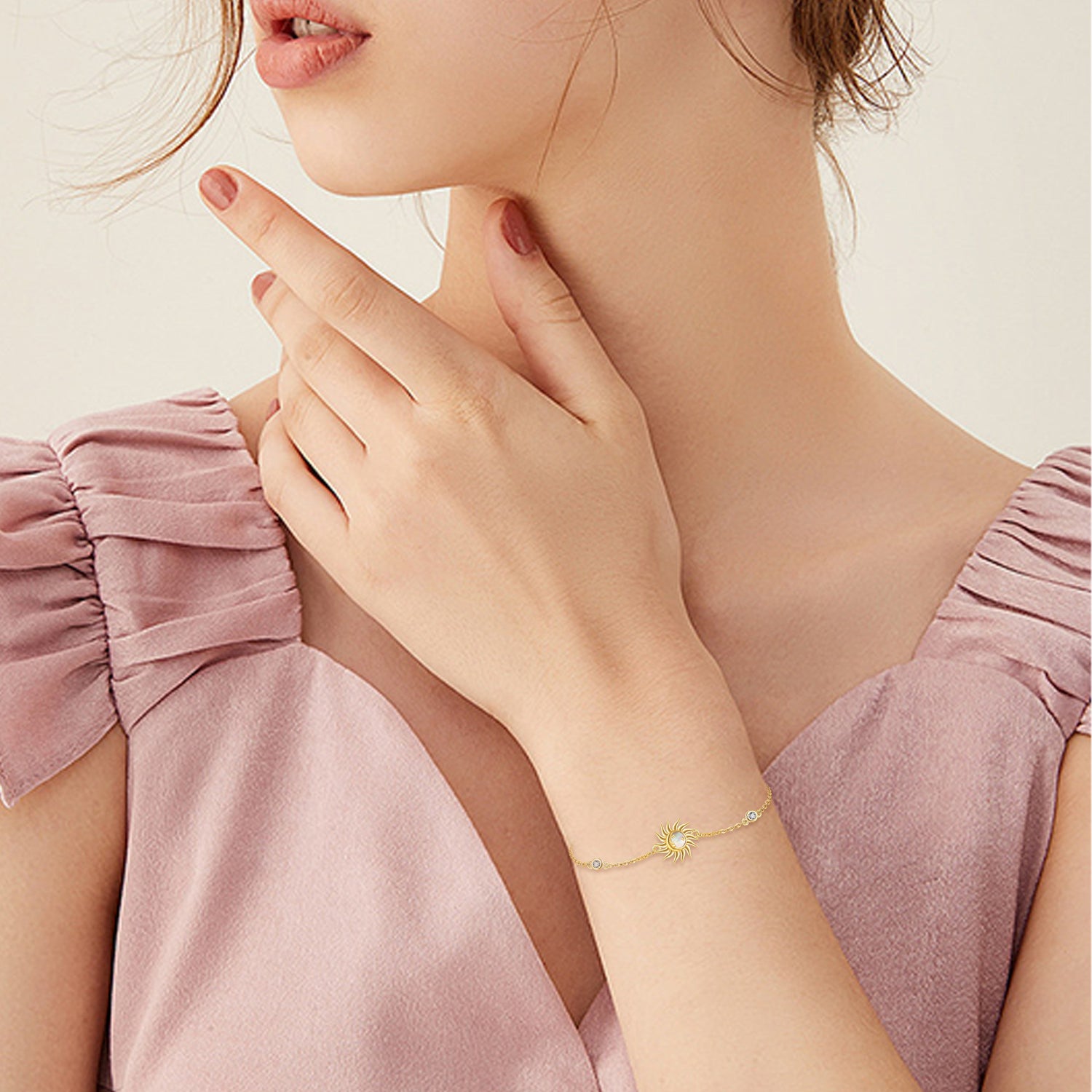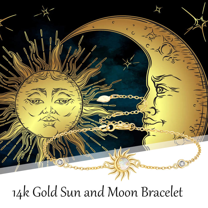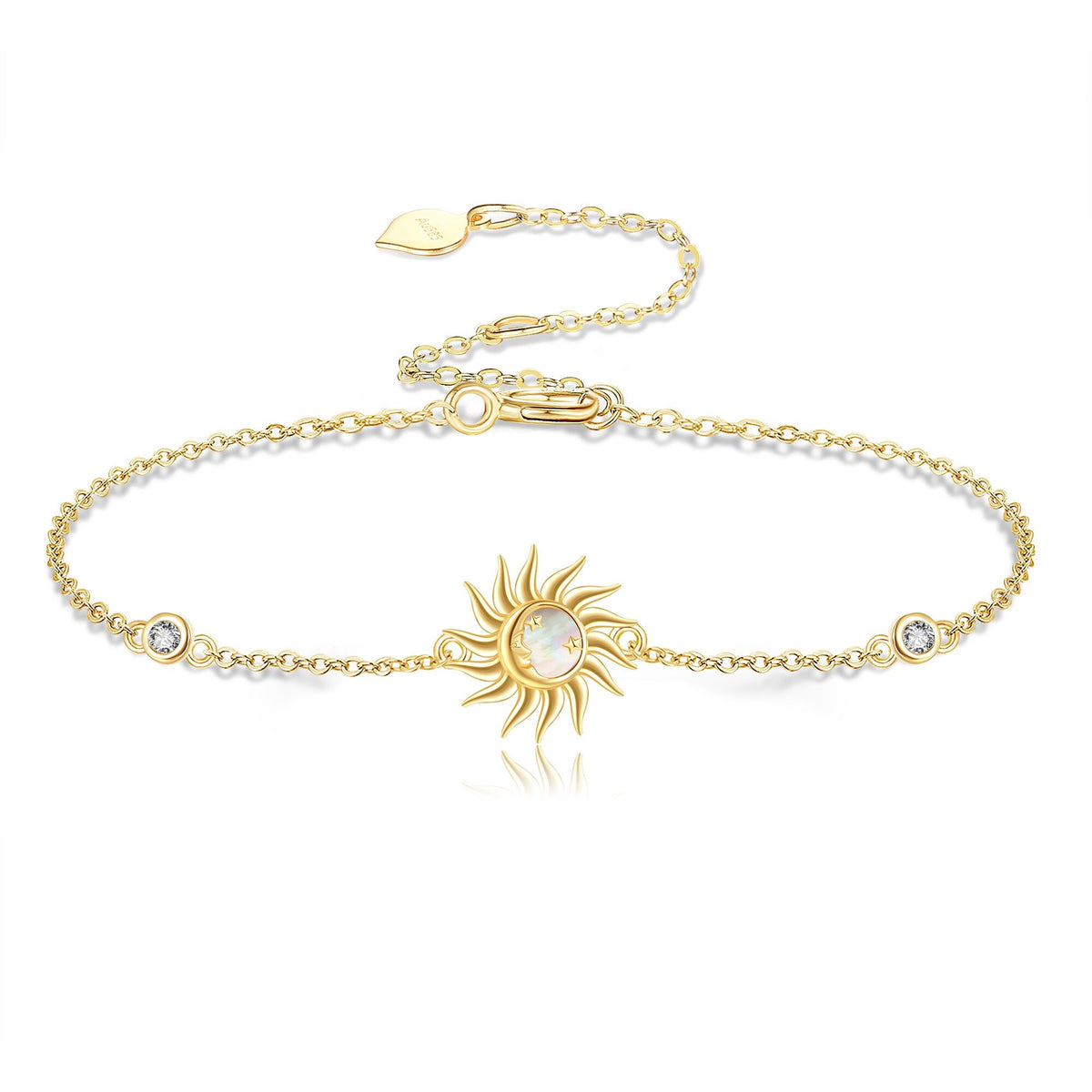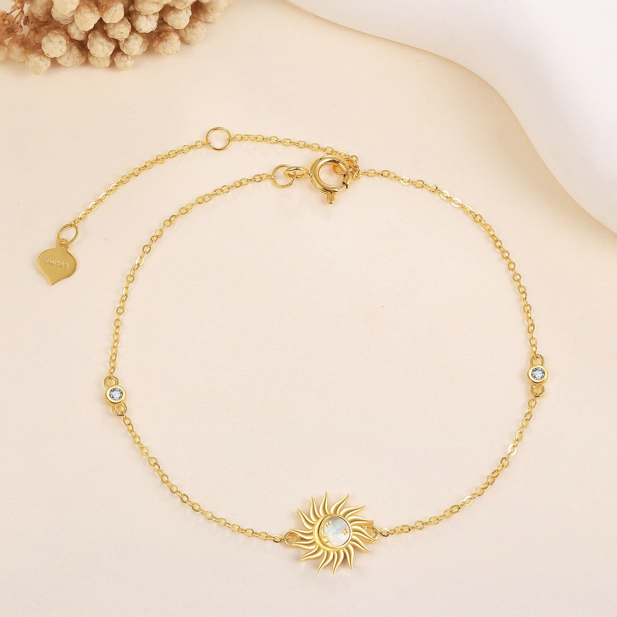 14K Gold Cubic Zirconia & Opal Sun Bracelet for Women