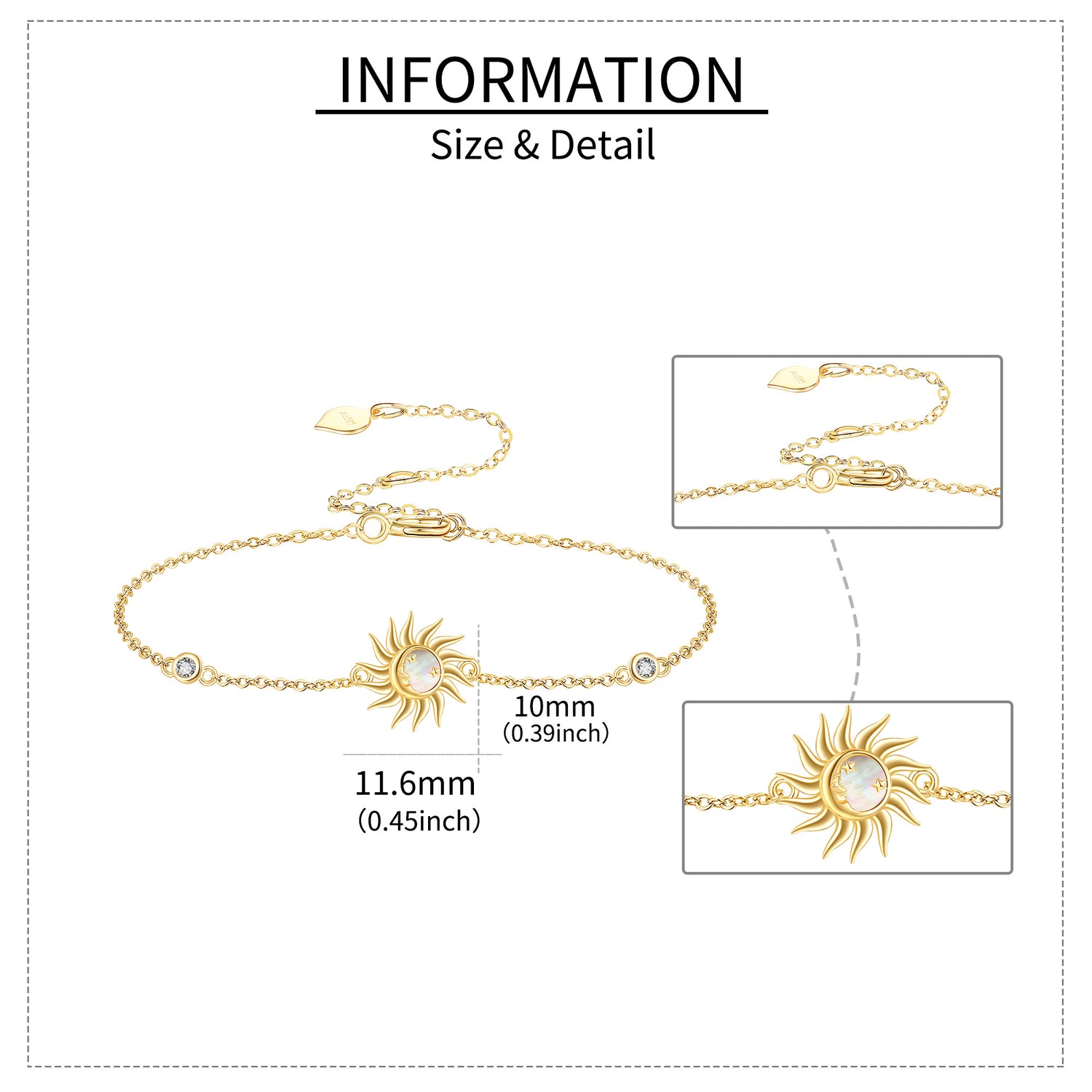 Crafted in 14K gold. Features opal sun charm with cubic zirconia accents. Includes adjustable gold bracelet chain.