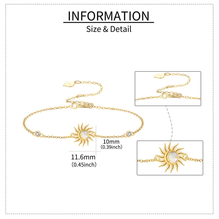 This 14K Gold Cubic Zirconia & Opal Sun Bracelet for Women by YFN radiates warmth and brilliance, combining vibrant opal with sparkling cubic zirconia accents. Designed for women who embrace joyful elegance, its sun charm symbolizes positivity, energy, and renewal. The luminous opal center adds a touch of ethereal color, while the cubic zirconia highlights enhance its radiant appeal. Crafted in durable, hypoallergenic 14K gold, the bracelet feels luxurious yet comfortable for daily wear. Perfect for layering or wearing alone, it elevates any outfit with refined glow and contemporary charm.