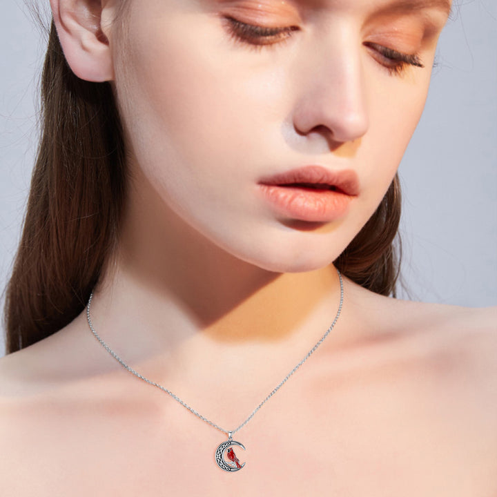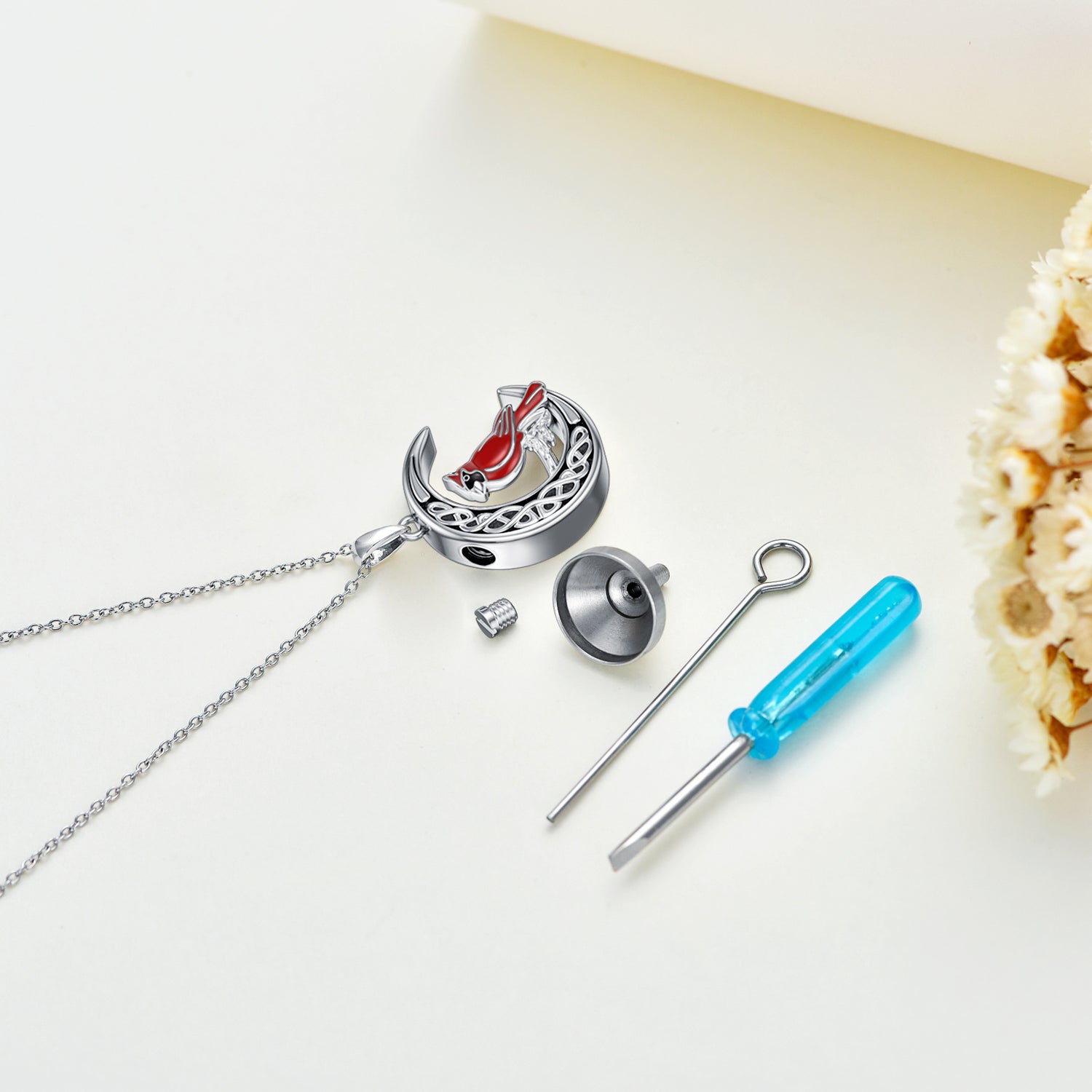 Sterling Silver Cardinal & Celtic Knot With Moon Urn Necklace For Ashes