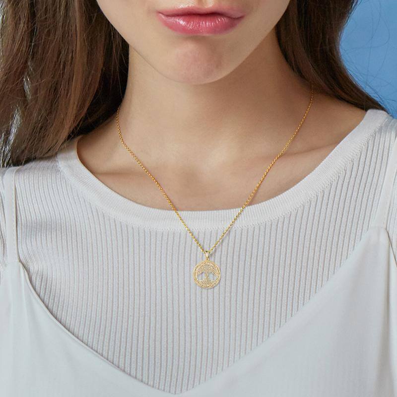 This 14K Gold Tree Of Life & Celtic Knot Pendant Necklace by YFN is free from gemstones, highlighting the rich symbolism of the Tree of Life intertwined with intricate Celtic Knots. Crafted from luxurious 14K Gold, its simplicity ensures a versatile and understated elegance, exuding both strength and grace for women who cherish tradition and modern style.