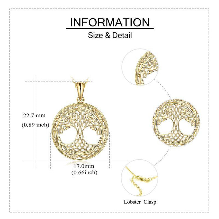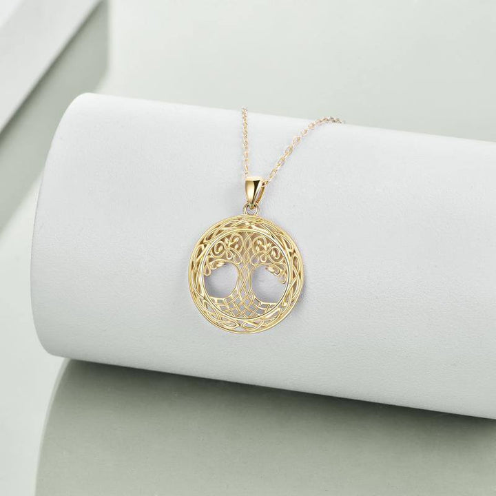 14K Gold Tree Of Life & Celtic Knot Pendant Necklace