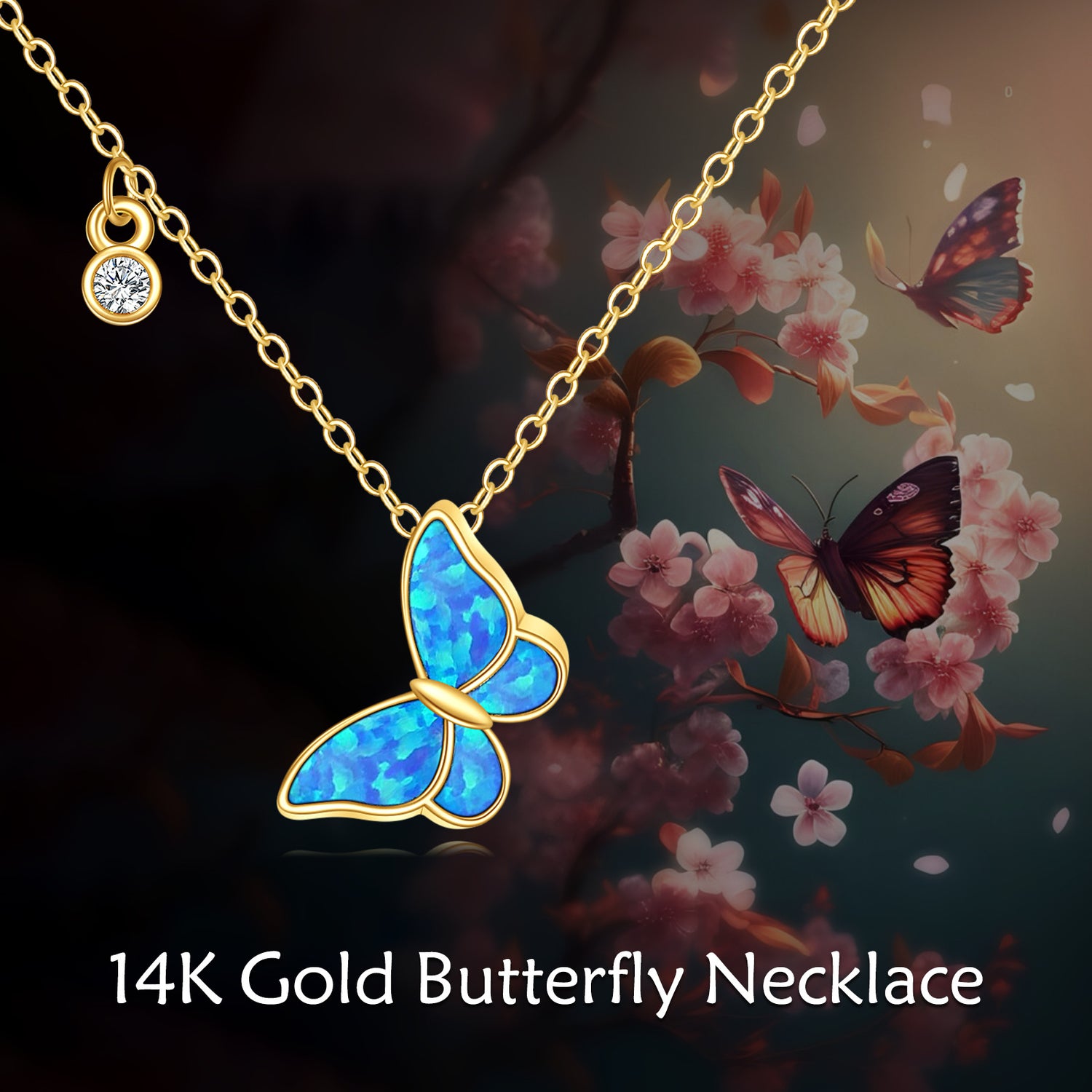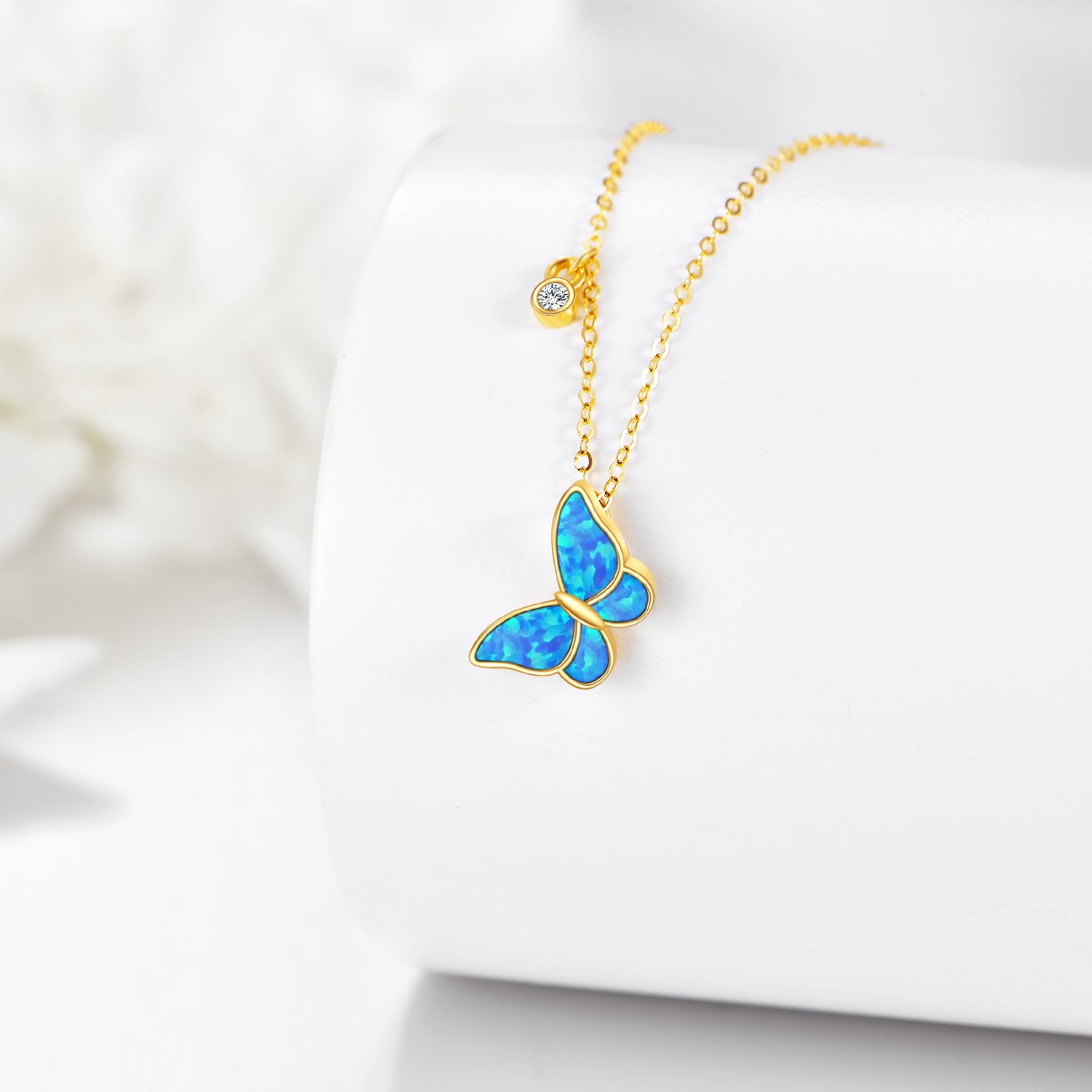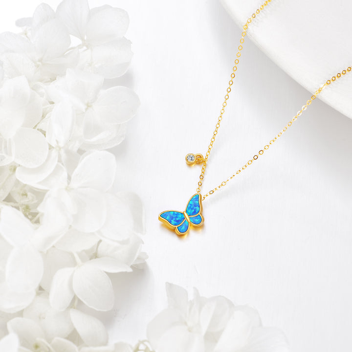 This 14K Gold Circular Shaped Cubic Zirconia & Opal Butterfly Pendant Necklace by YFN elevates elegance with a blend of classic and modern charm. Crafted with 14K gold, the pendant showcases circular and butterfly shapes, embellished with shimmering Cubic Zirconia and captivating clear/blue Opal gemstones. This versatile piece is more than jewelry—it's a sparkling statement for women.