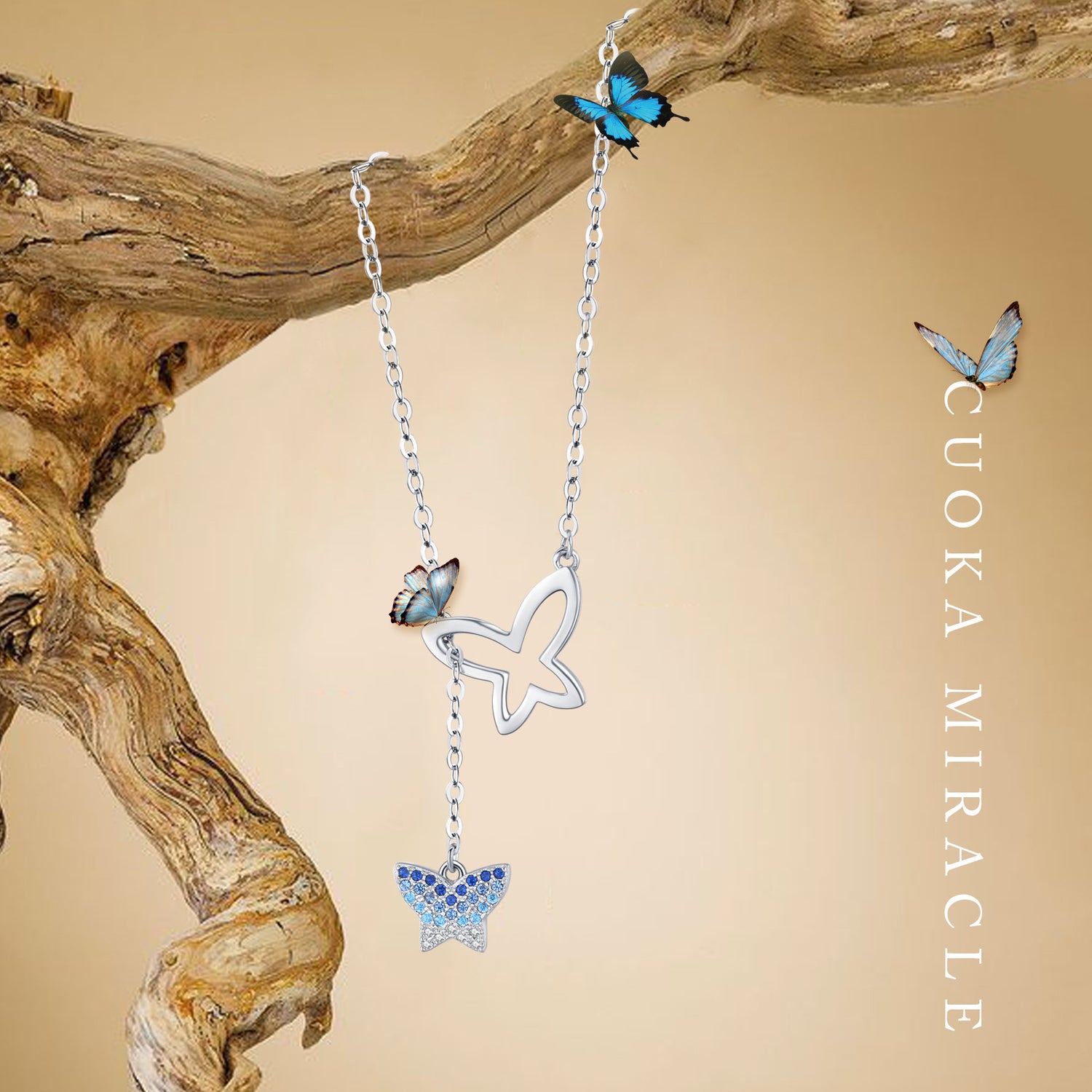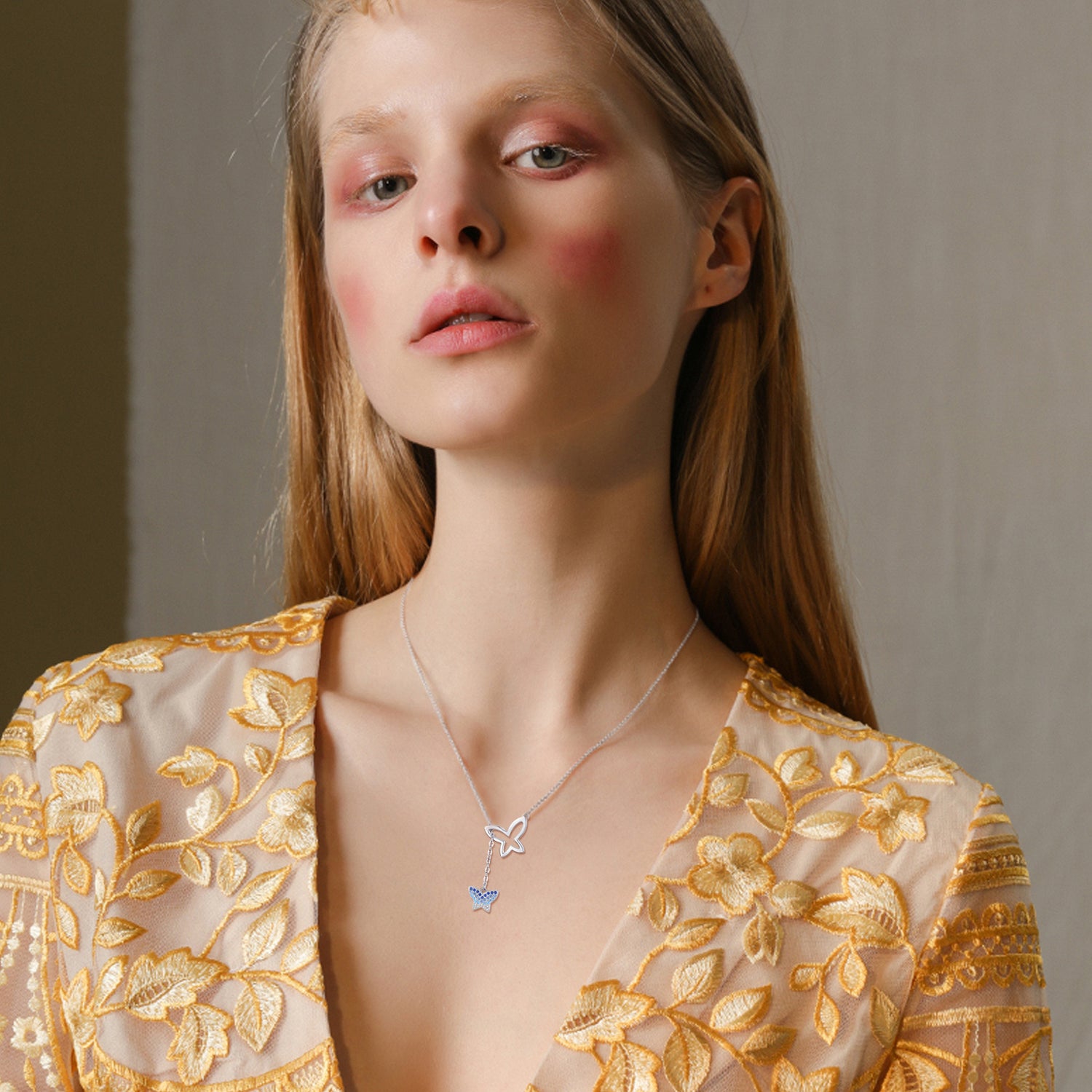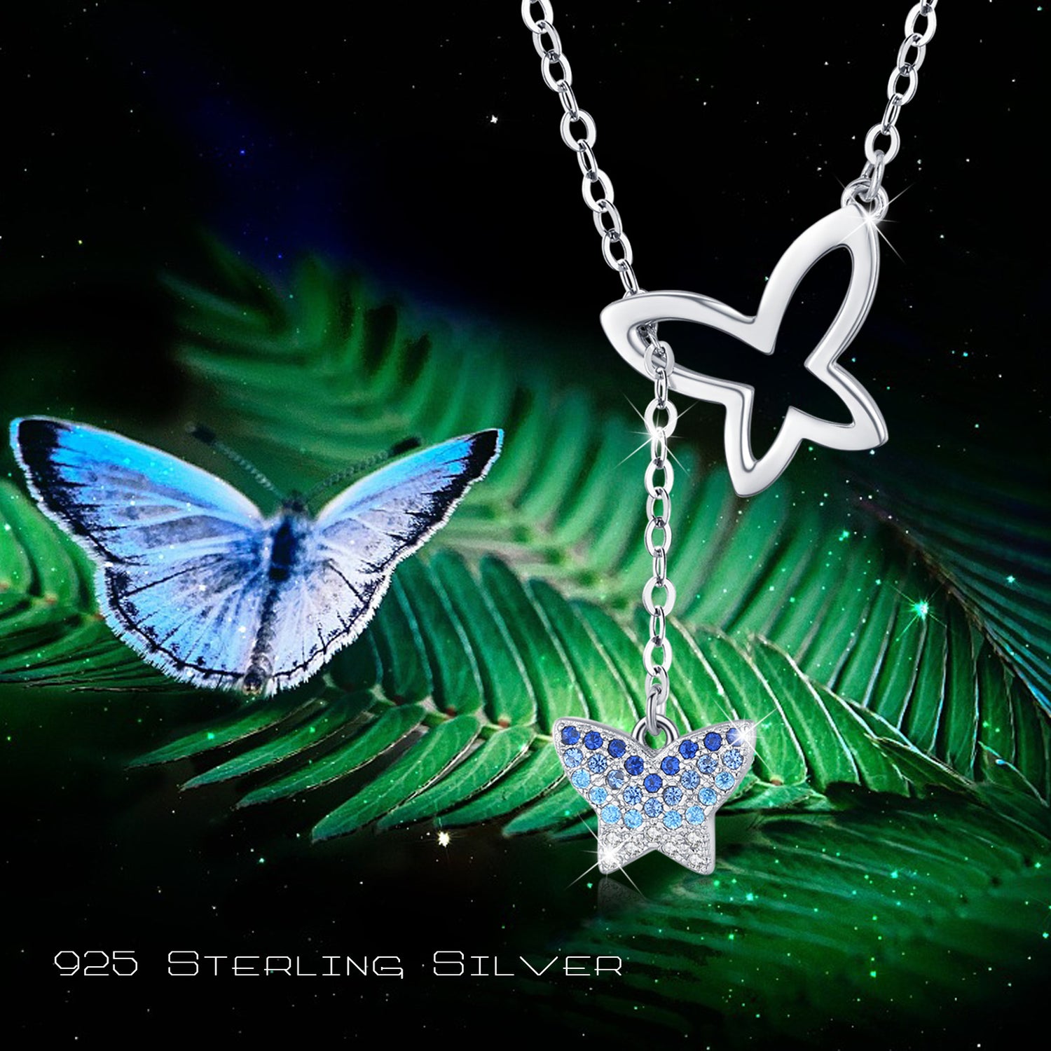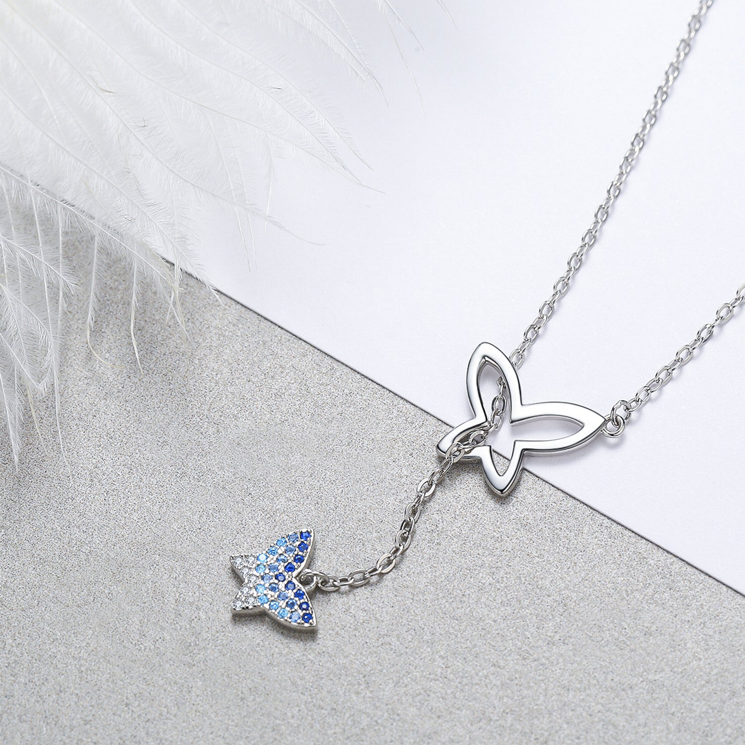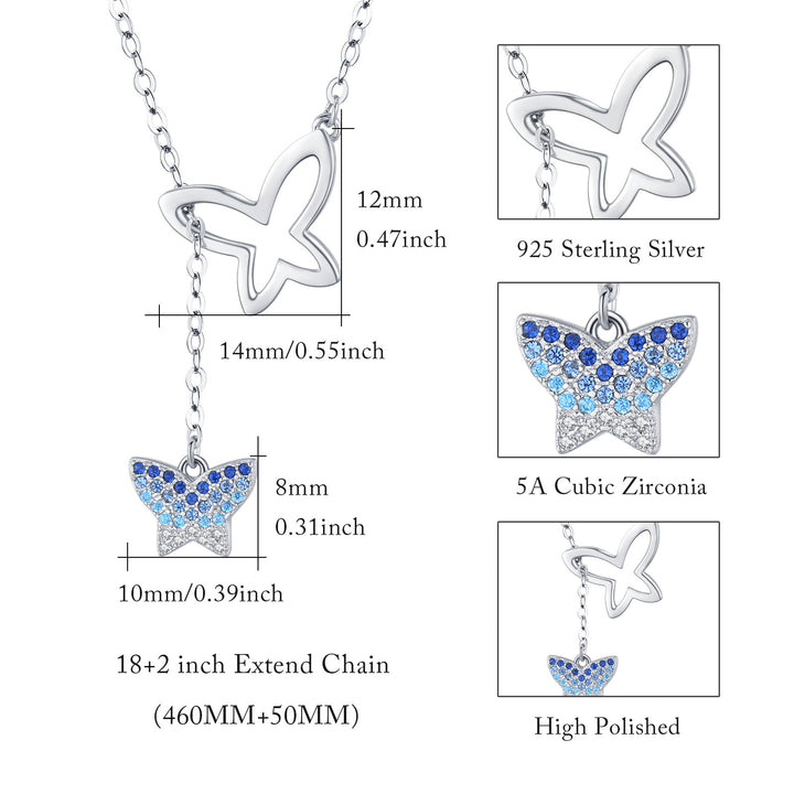 This Sterling Silver Round Zircon Butterfly Pendant Necklace by YFN is a sophisticated accessory for all genders. Elegantly White gold plated, this unisex necklace features a stunning round blue zircon gemstone set in a sterling silver butterfly pendant, offering a perfect blend of charm and durability.