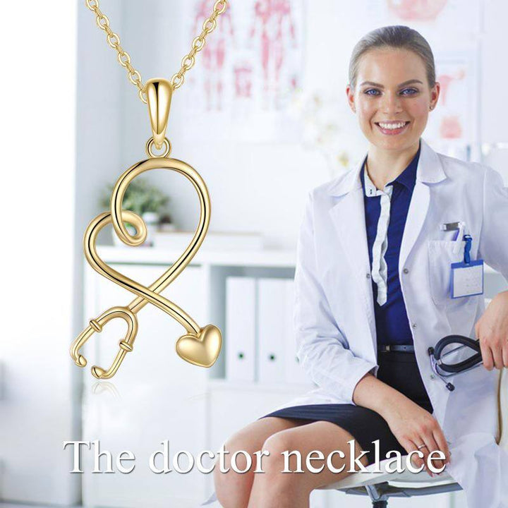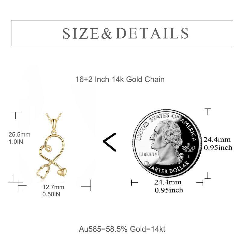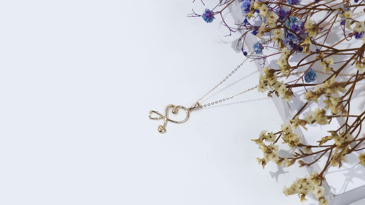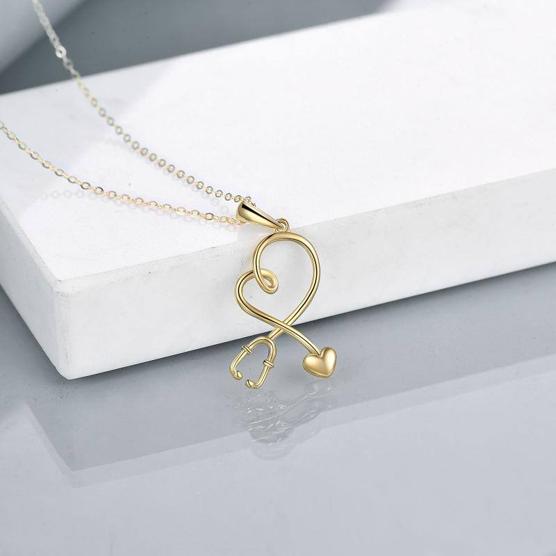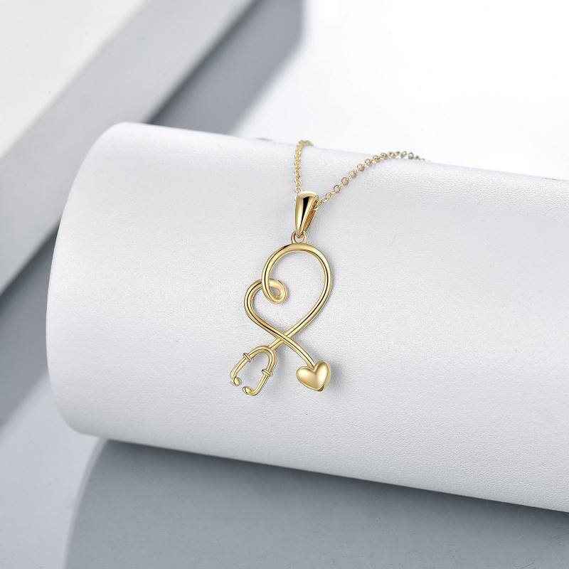 This 14K Gold Heart & Stethoscope Pendant Necklace by YFN is an ideal, stone-free gift for women in healthcare or those who appreciate unique, heartfelt jewelry. Crafted from 14K Gold, this Heart-Shaped Pendant Necklace beautifully integrates a Stethoscope Motif, celebrating compassion and care with a sleek and sophisticated look.