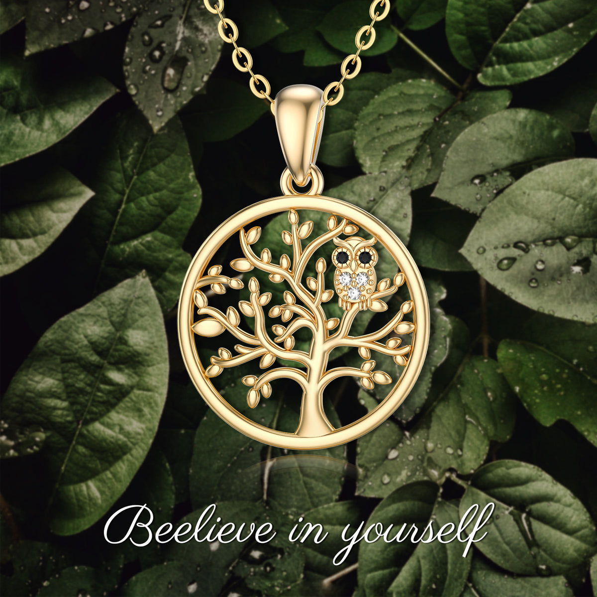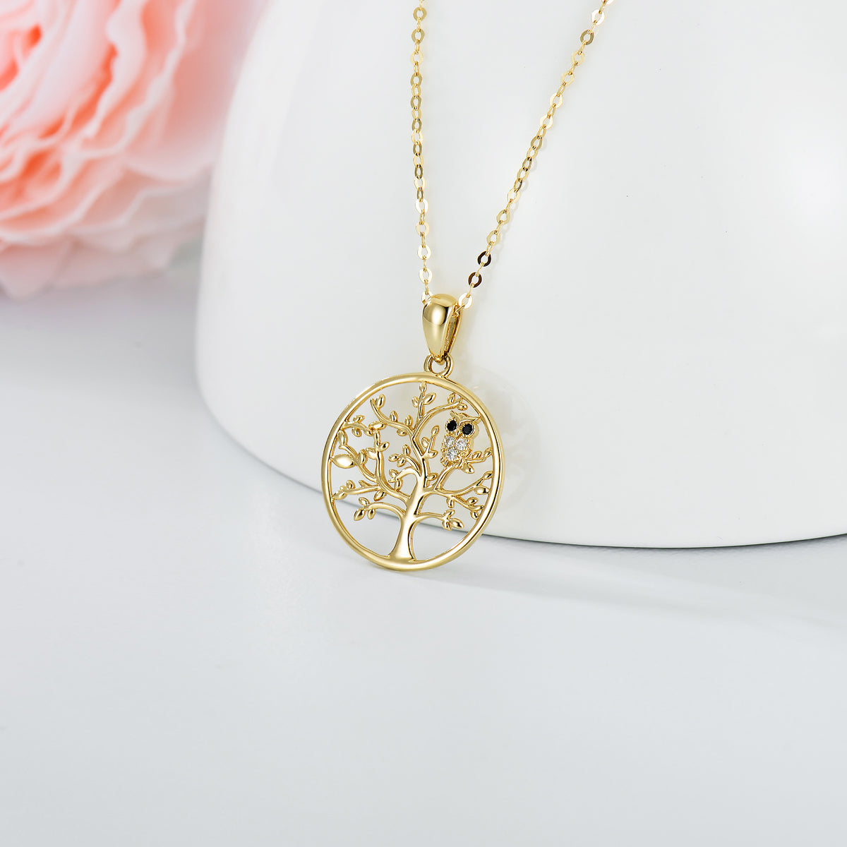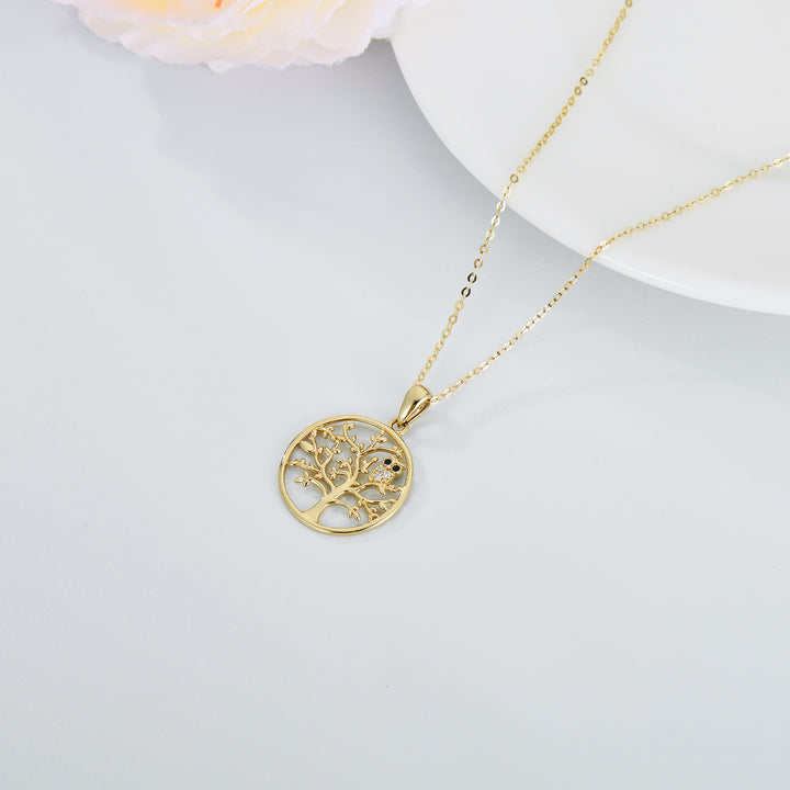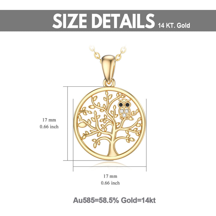 14K Gold Moissanite Owl & Tree Of Life Pendant Necklace