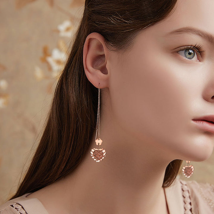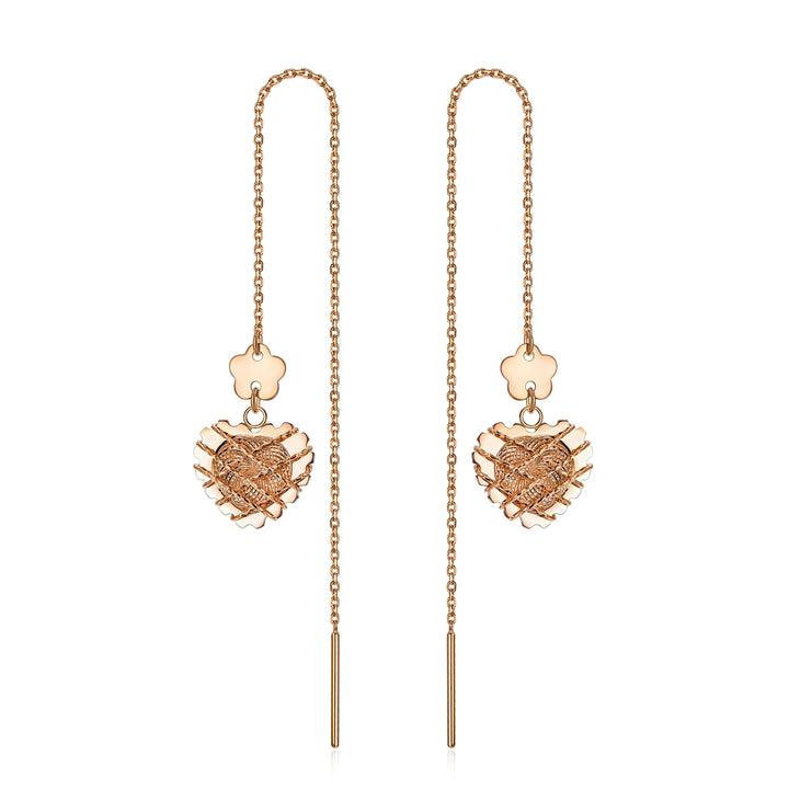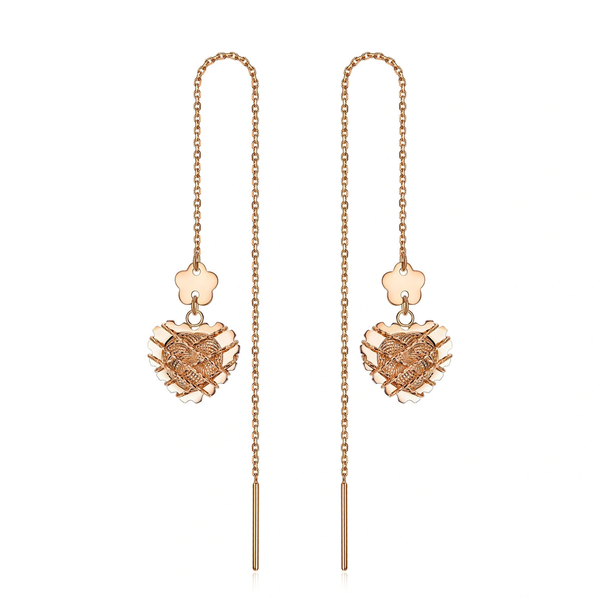 These 18K Rose Gold Heart Drop Earrings by YFN are a stone-free, luxurious addition for women. Crafted from high-quality 18K rose gold, these drop earrings boast a chic heart design, free from stones to maintain a minimalist yet refined glamorous appearance.