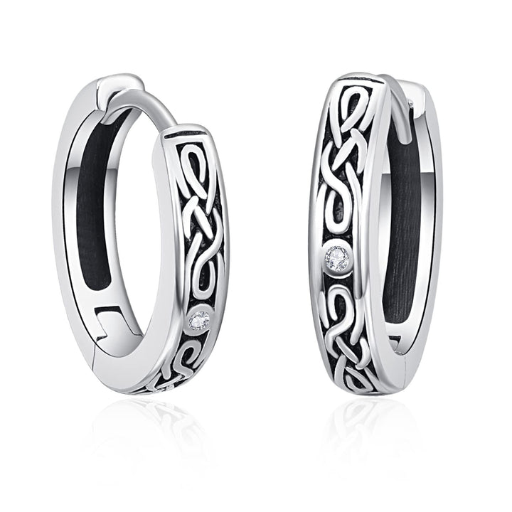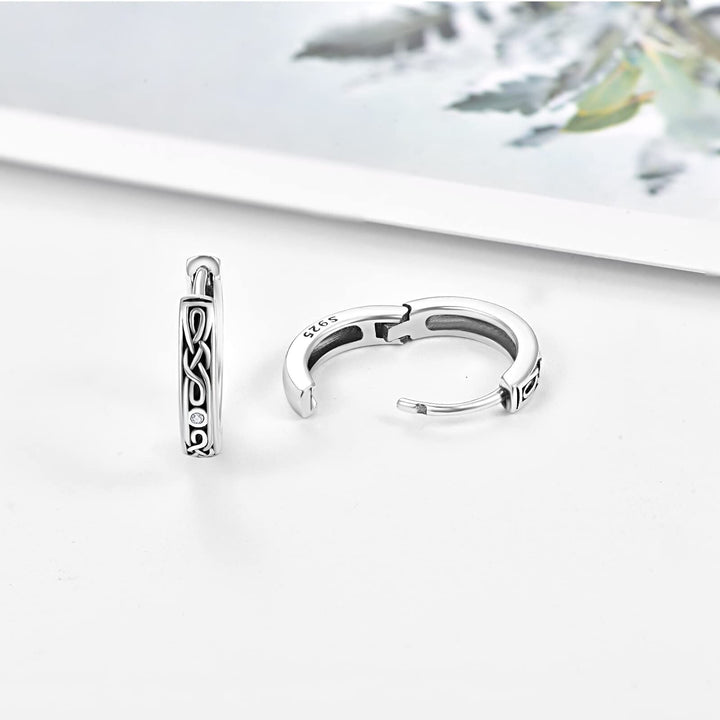 Crafted from premium Sterling Silver with a Retro Silver finish, these circular Hoop Earrings are adorned with sparkling Cubic Zirconia and intricate Celtic Knot accents.