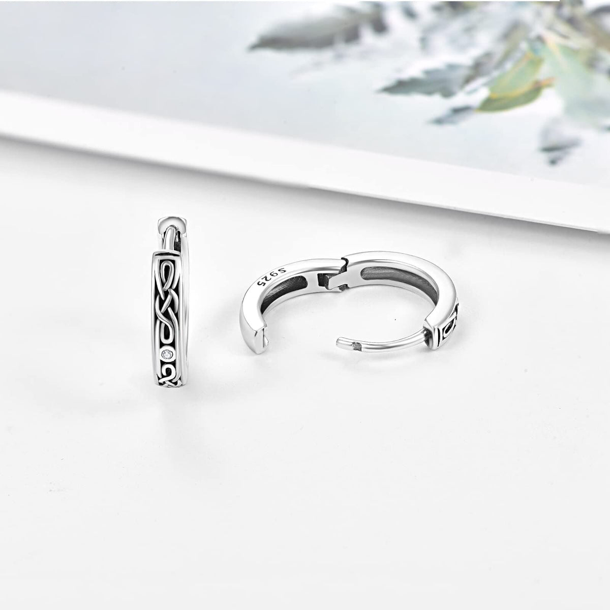 These Sterling Silver Circular Shaped Cubic Zirconia Celtic Knot Hoop Earrings by YFN feature a unique circular design adorned with sparkling Cubic Zirconia and intricate Celtic Knot accents. Crafted from premium sterling silver with a Retro Silver finish, they blend timeless elegance with cultural charm, adding a brilliant shine for both daily and special occasions.