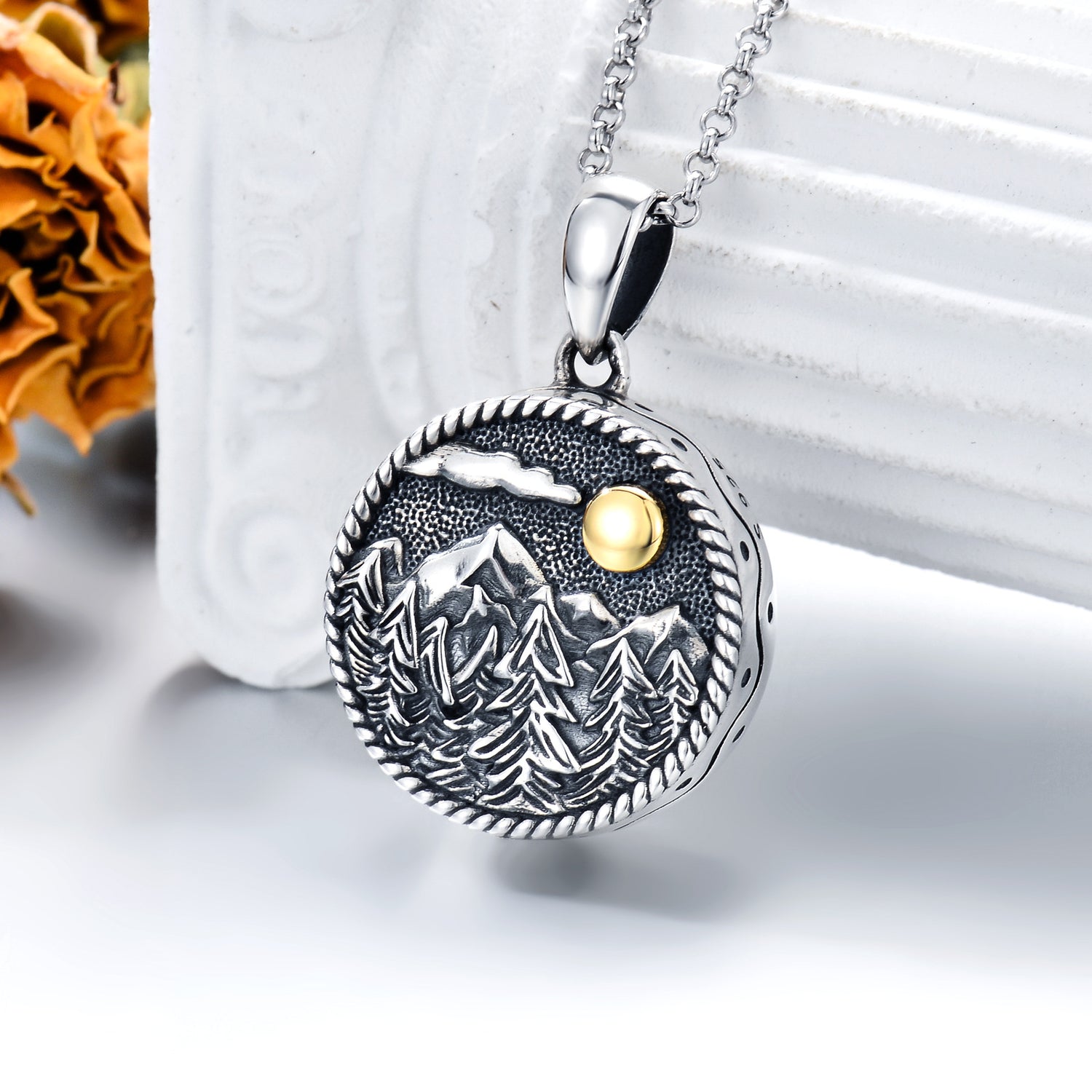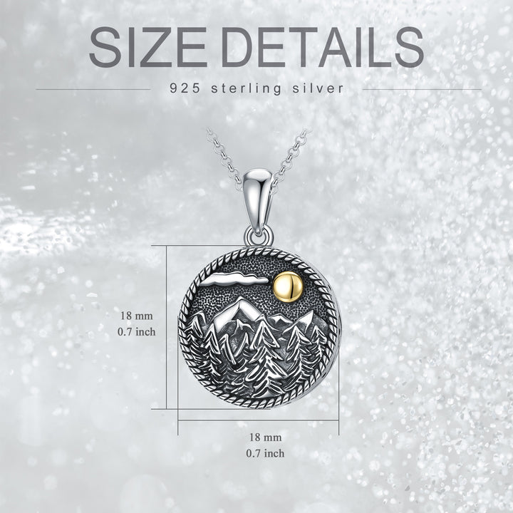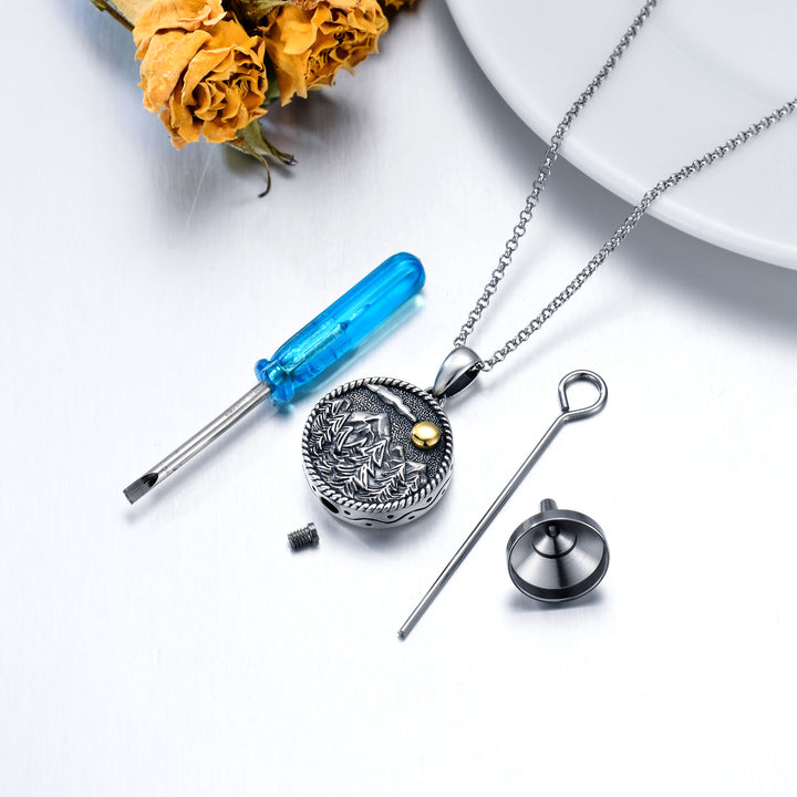 Sterling Silver Two-tone Mountains Tree & Sun Urn Necklace for Ashes