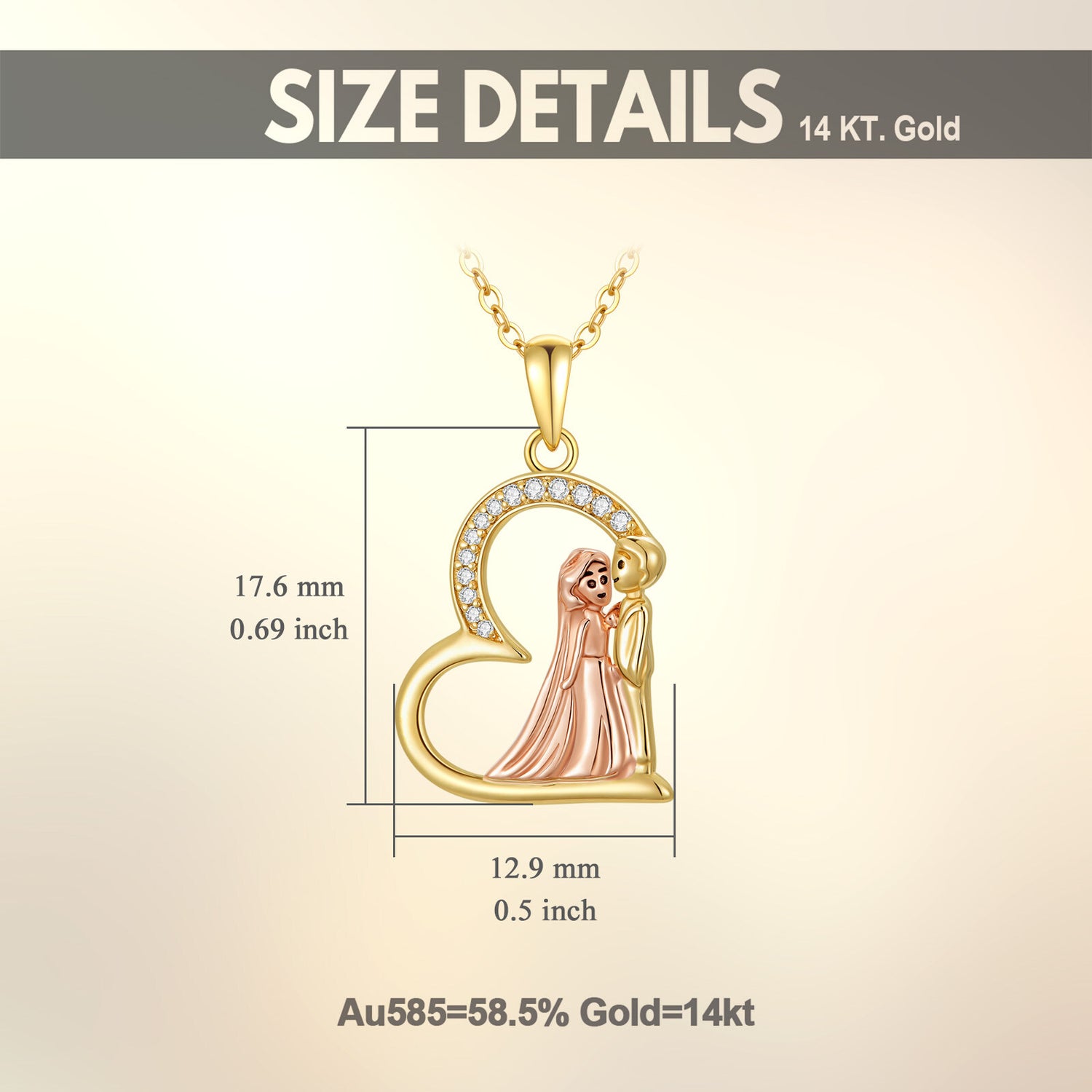 14K Gold & Rose Gold Circular Zircon Pendant Necklace For Couple
