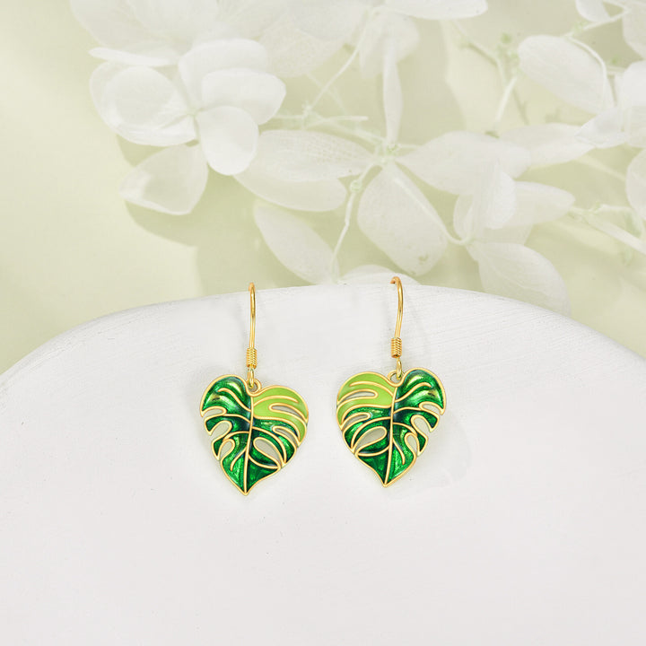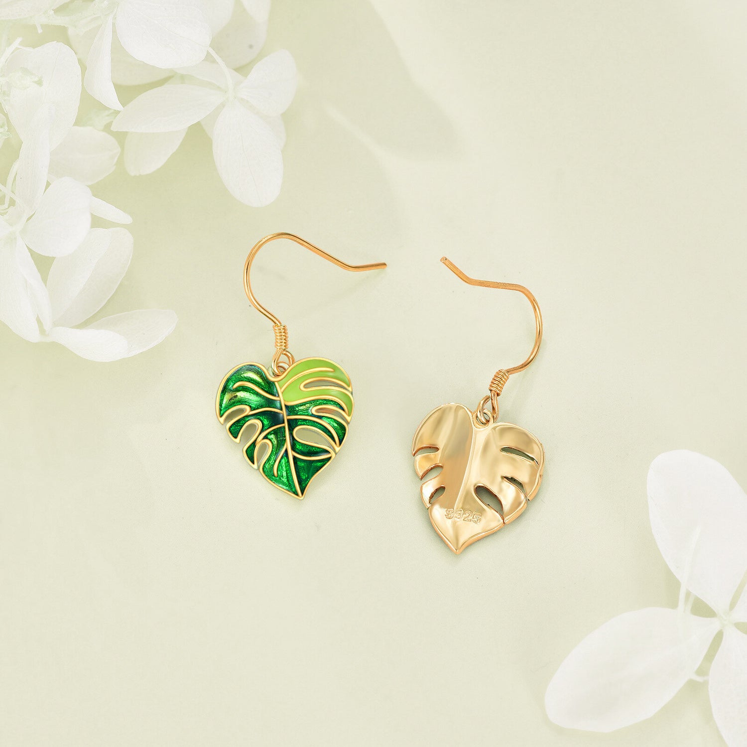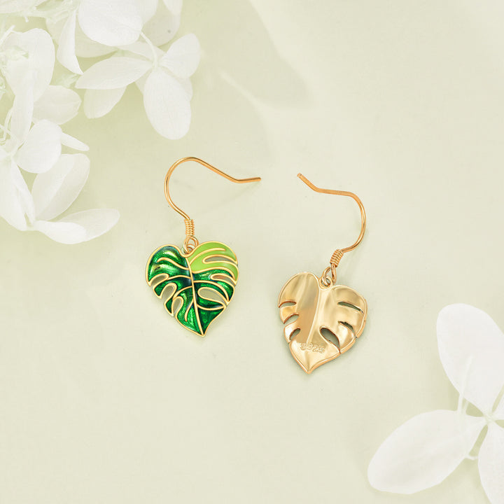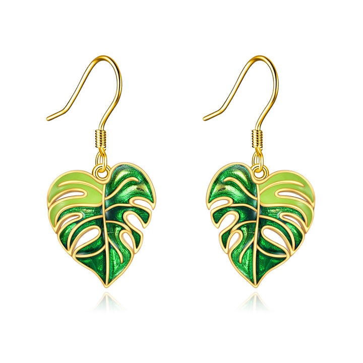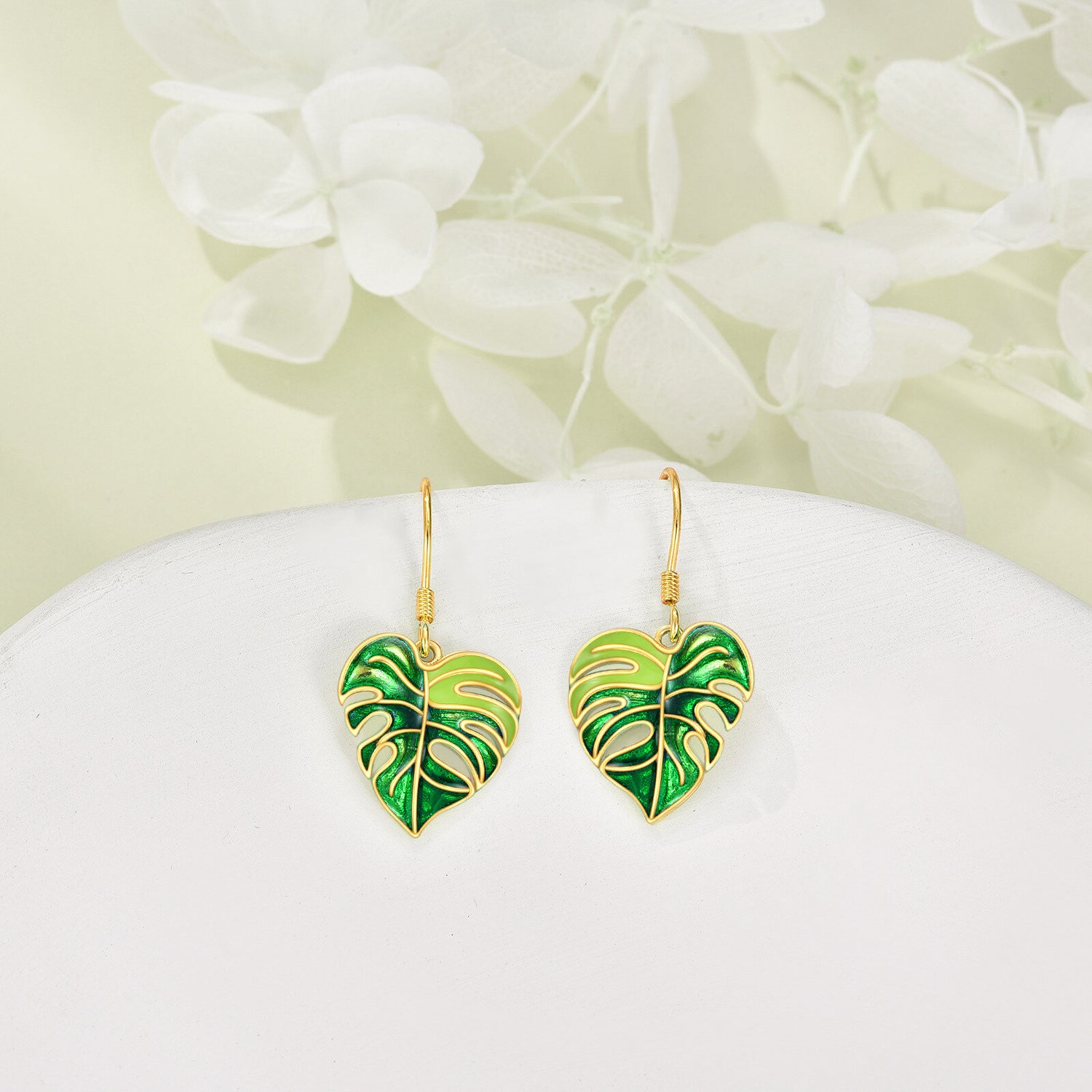 Crafted in 14K gold. Features detailed leaf-shaped drop earrings with secure ear wires. Stone-free design.