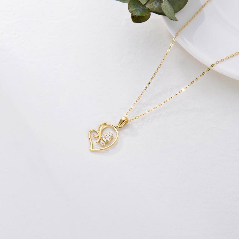 14K Gold Cubic Zirconia Heart Pendant Necklace