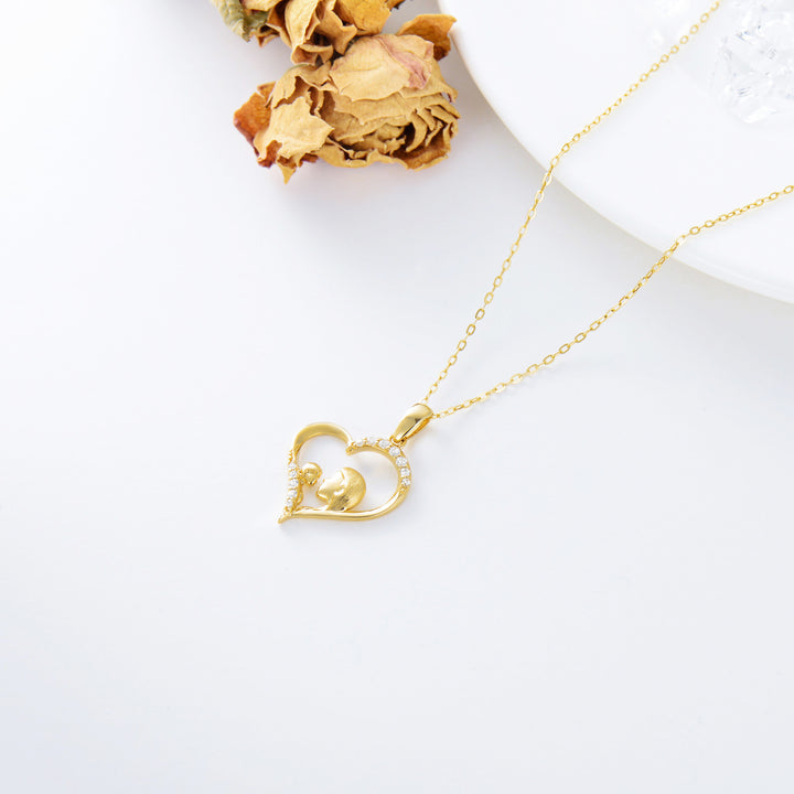 Crafted from high-quality 14K Gold, this Pendant Necklace features a charming Heart design adorned with sparkling clear Cubic Zirconia, celebrating the mother-child bond.