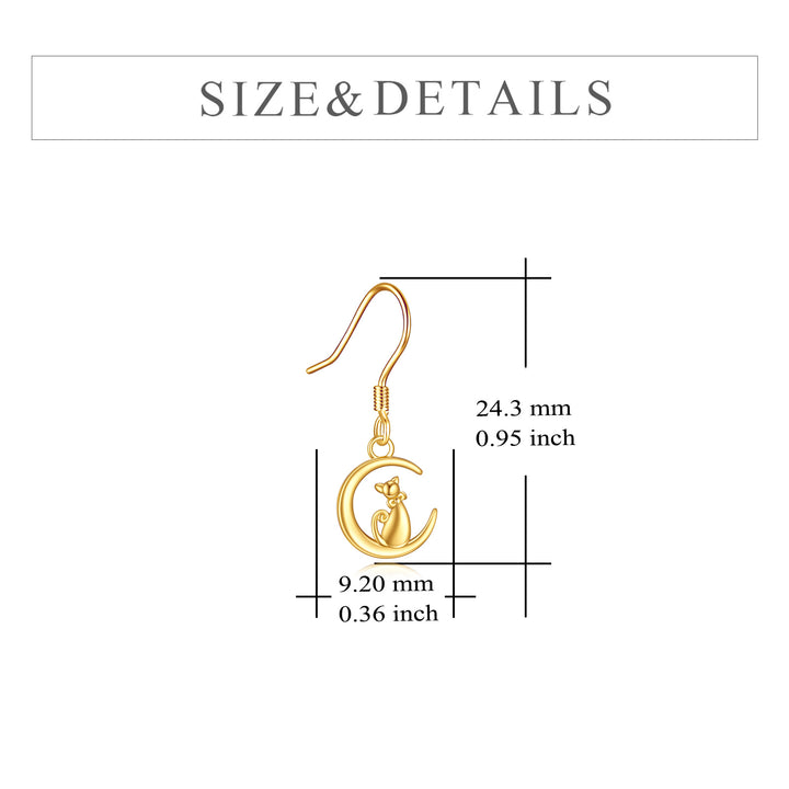 Crafted from high-quality 14K Gold, these no-stone Drop Earrings feature a charming Cat Silhouette gracefully intertwined with a Crescent Moon.