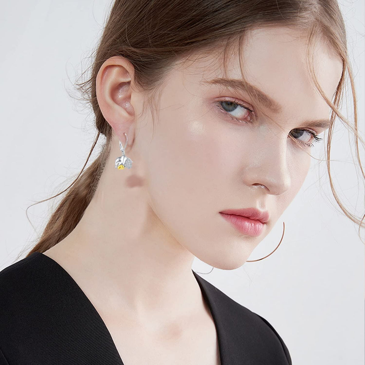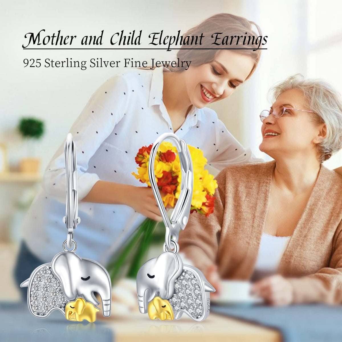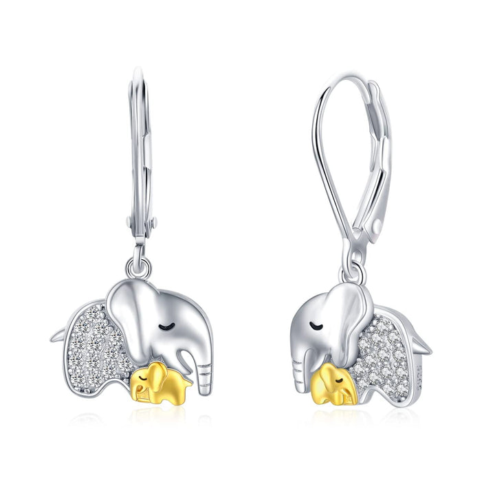 These Lever-back Earrings are crafted from Meticulously Crafted Sterling Silver with White Gold Plating and Yellow Gold Plating options, featuring Dazzling White Cubic Zirconia stones and Charming Elephant motifs.